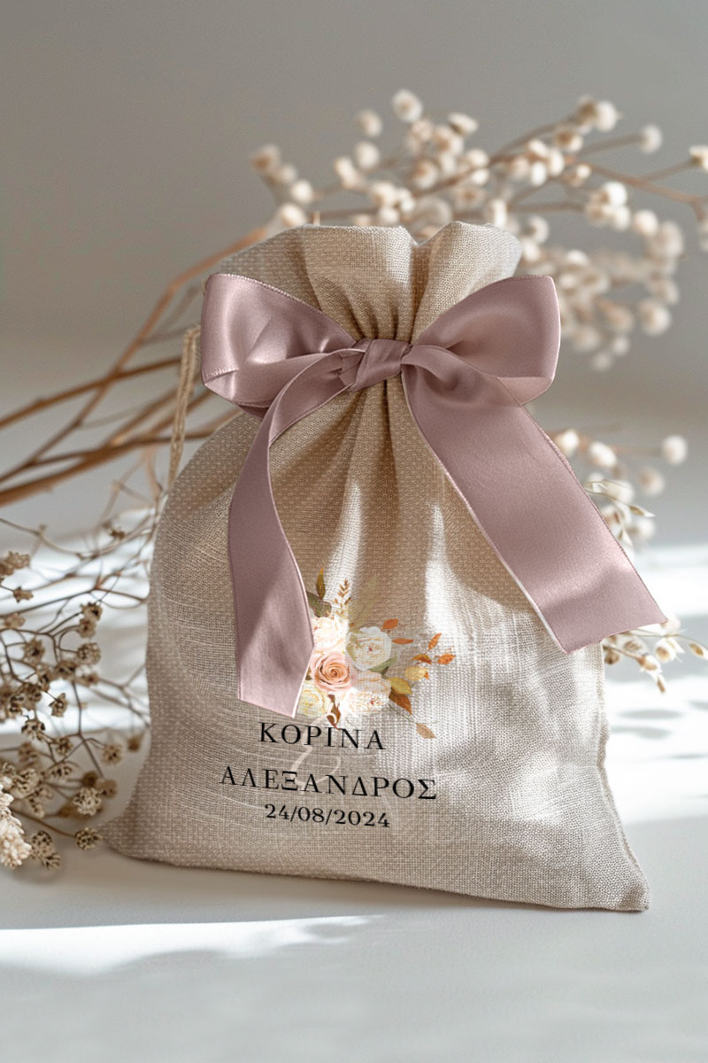 1.59€Μοντέρνες και Πρωτότυπες Μπομπονιέρες Γάμου και Βάπτισης με Πουγκί από Καμβά | Σετ Πουγκί, Εσωτερικό Τούλι & Κορδέλα Σατέν | Premium ποιότητα