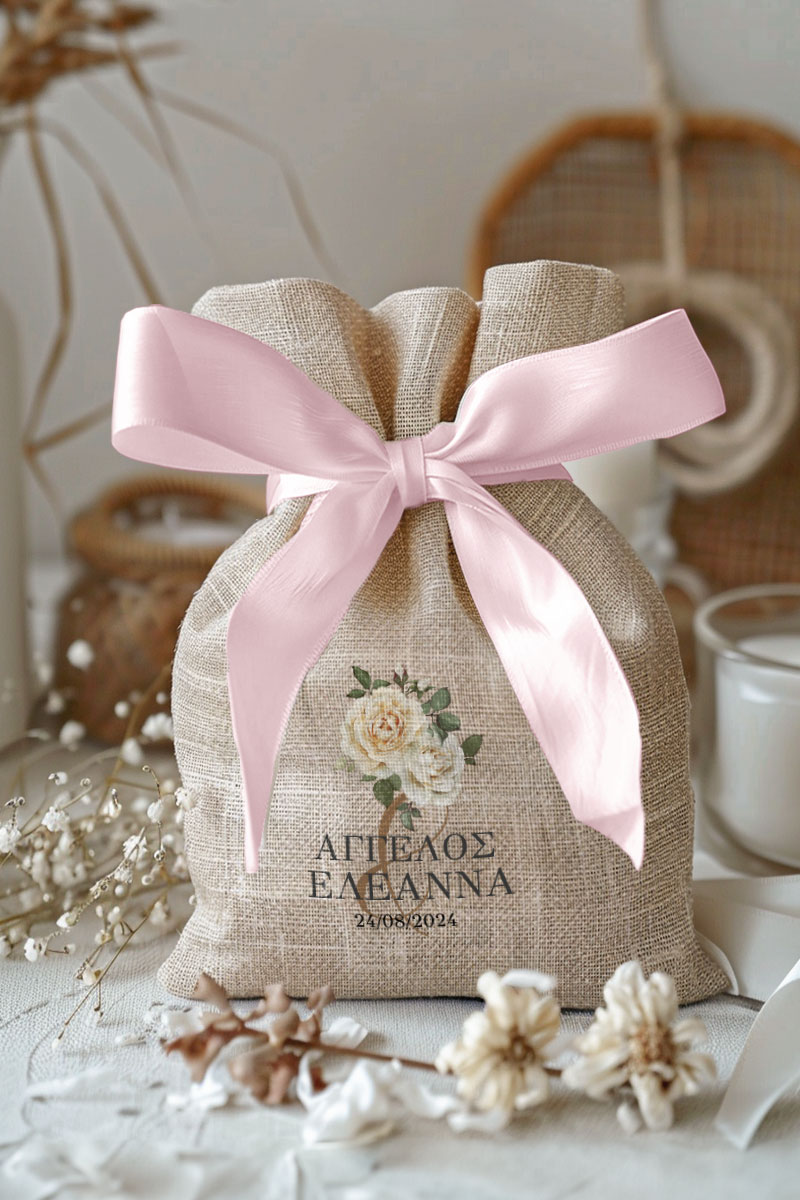 1.59€Μοντέρνες και Πρωτότυπες Μπομπονιέρες Γάμου με Πουγκί από Καμβά | Σετ Πουγκί, Εσωτερικό Τούλι & Κορδέλα Σατέν | Premium ποιότητα