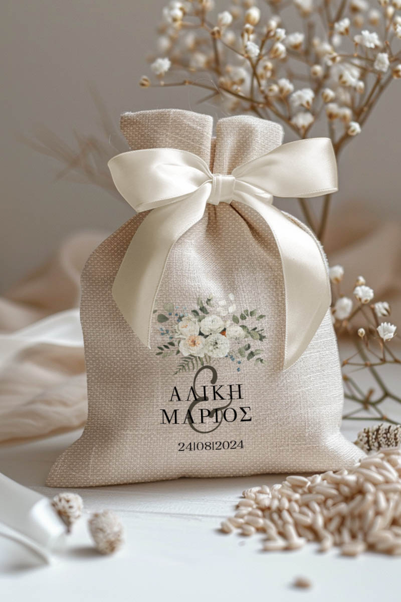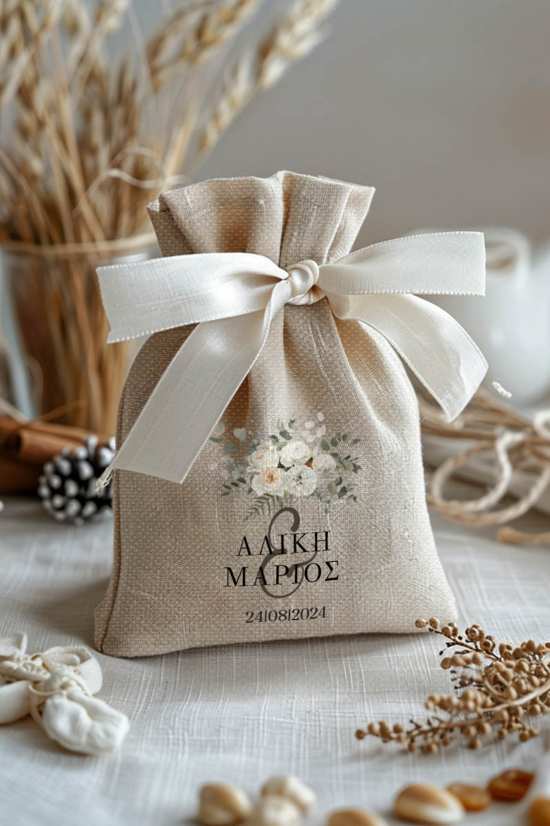 1.59€Μοντέρνες και Πρωτότυπες Μπομπονιέρες Γάμου και Βάπτισης με Πουγκί από Καμβά | Σετ Πουγκί, Εσωτερικό Τούλι & Κορδέλα Σατέν | Premium ποιότητα