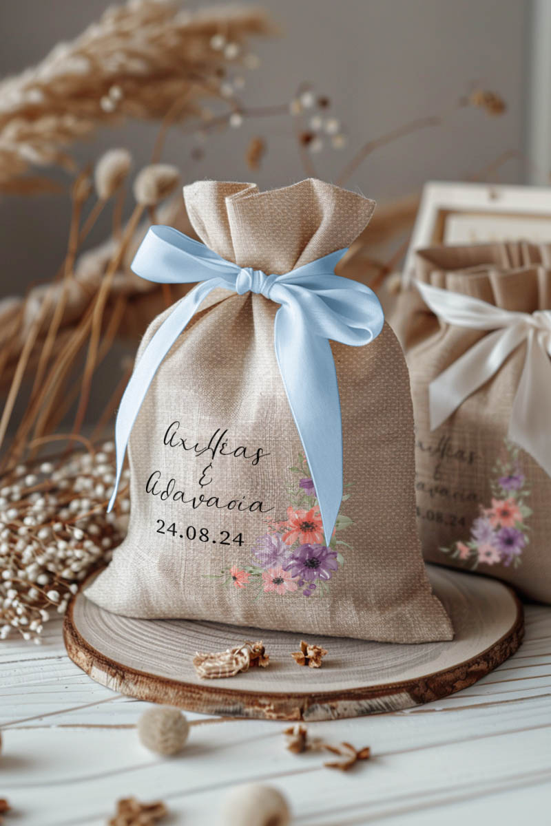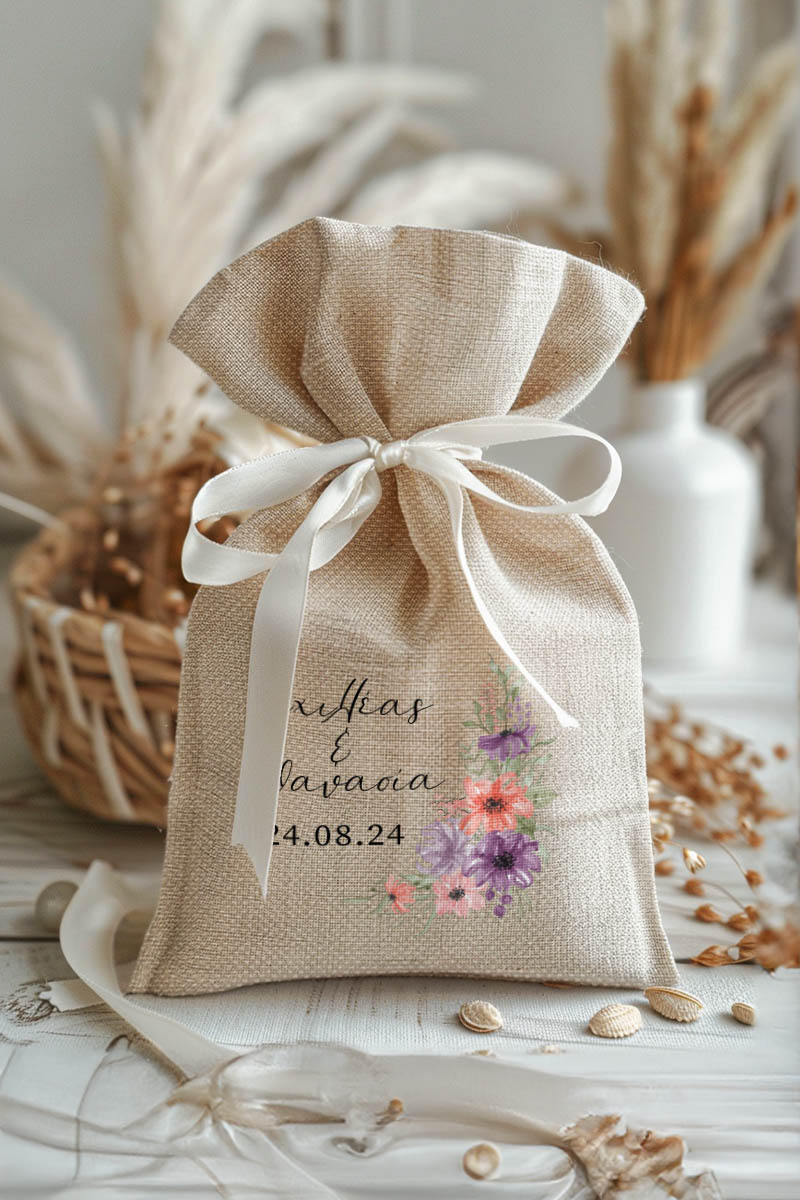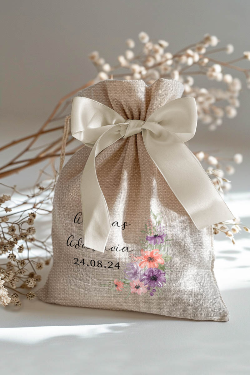 1.59€Μοντέρνες και Πρωτότυπες Μπομπονιέρες Γάμου με Πουγκί από Καμβά | Σετ Πουγκί, Εσωτερικό Τούλι & Κορδέλα Σατέν | Premium ποιότητα