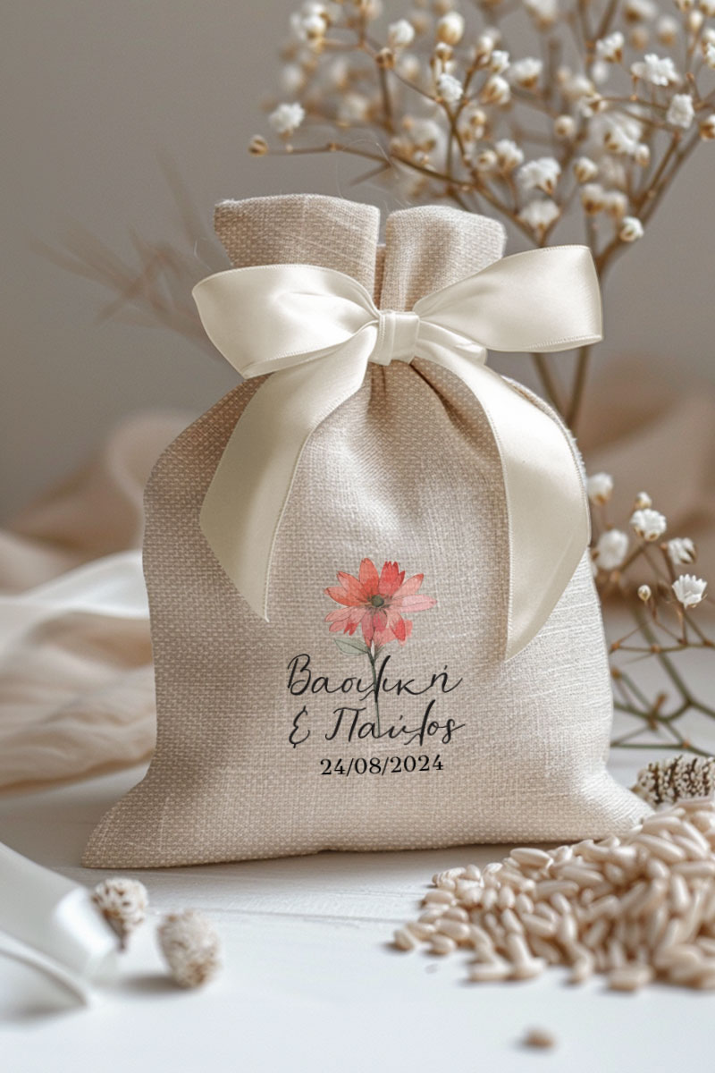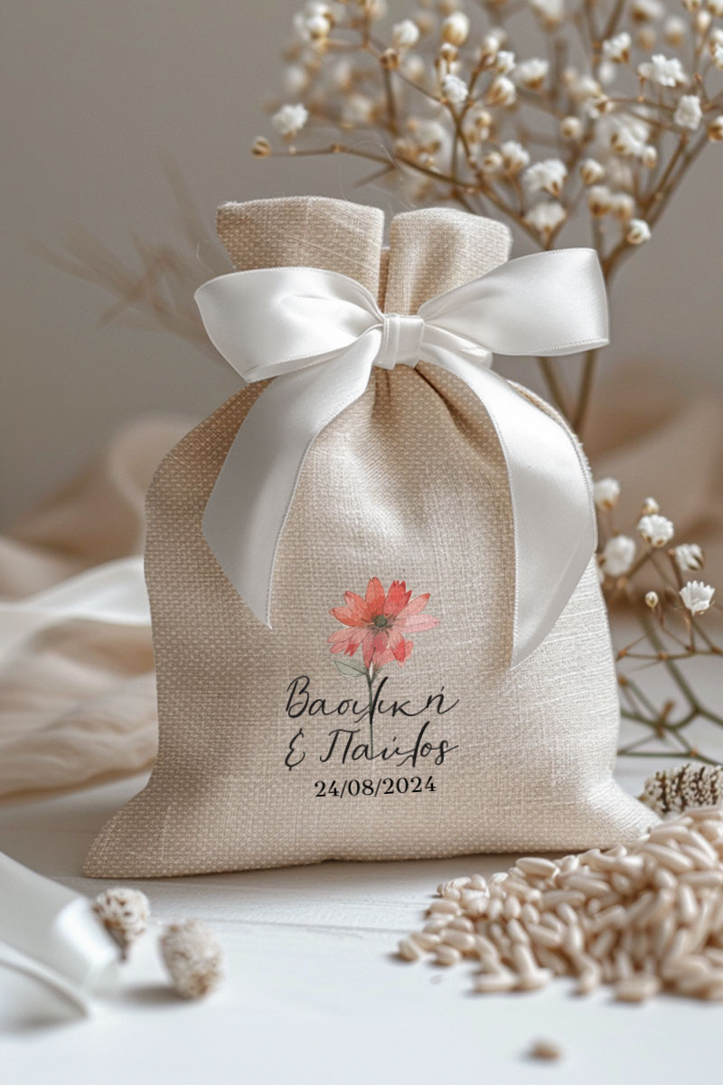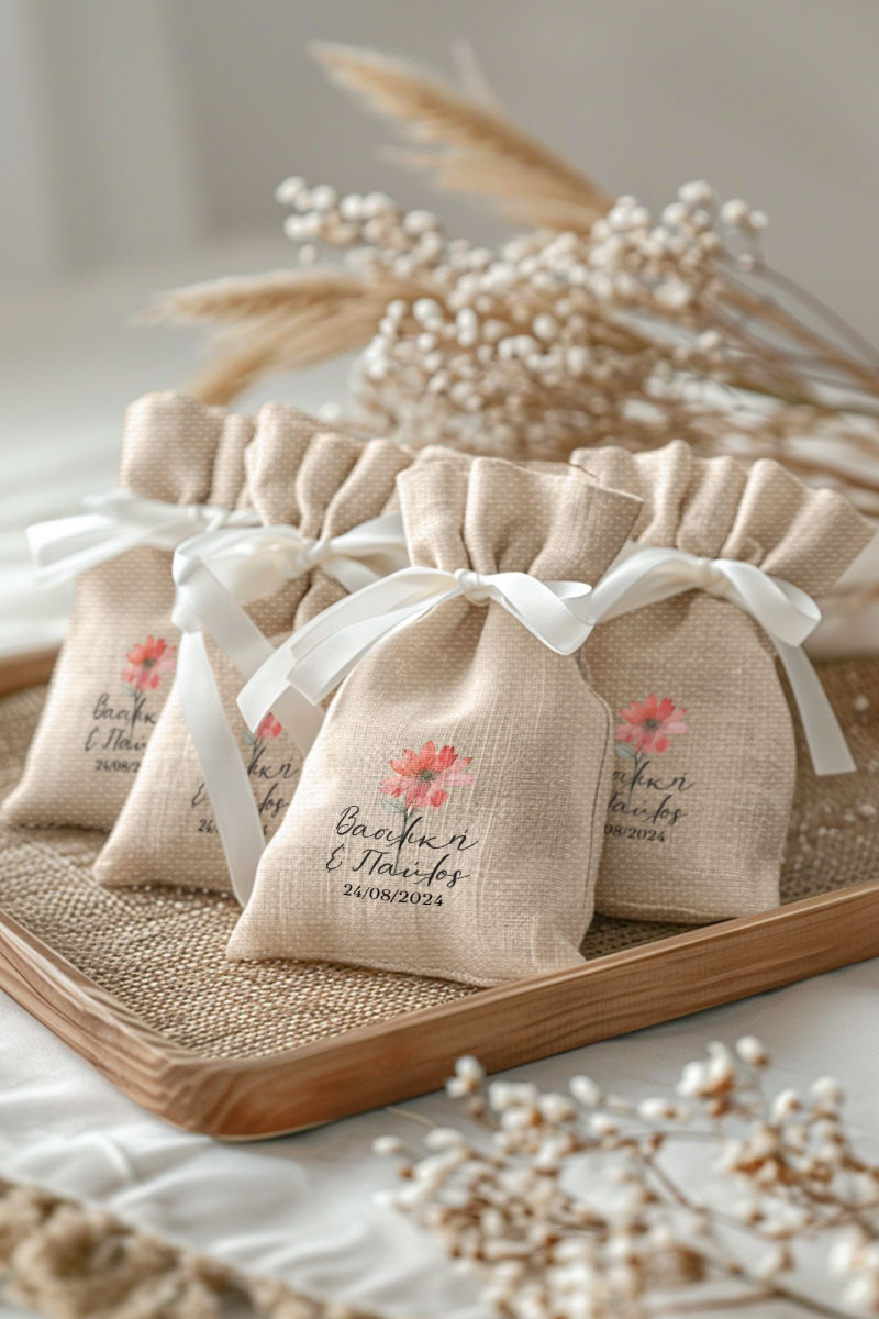 1.59€Μοντέρνες και Πρωτότυπες Μπομπονιέρες Γάμου και Βάπτισης με Πουγκί από Καμβά | Σετ Πουγκί, Εσωτερικό Τούλι & Κορδέλα Σατέν | Premium ποιότητα