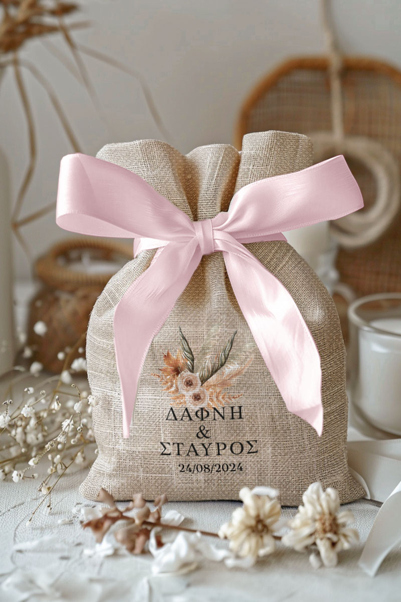 1.59€Μοντέρνες και Πρωτότυπες Μπομπονιέρες Γάμου με Πουγκί από Καμβά | Σετ Πουγκί, Εσωτερικό Τούλι & Κορδέλα Σατέν | Premium ποιότητα