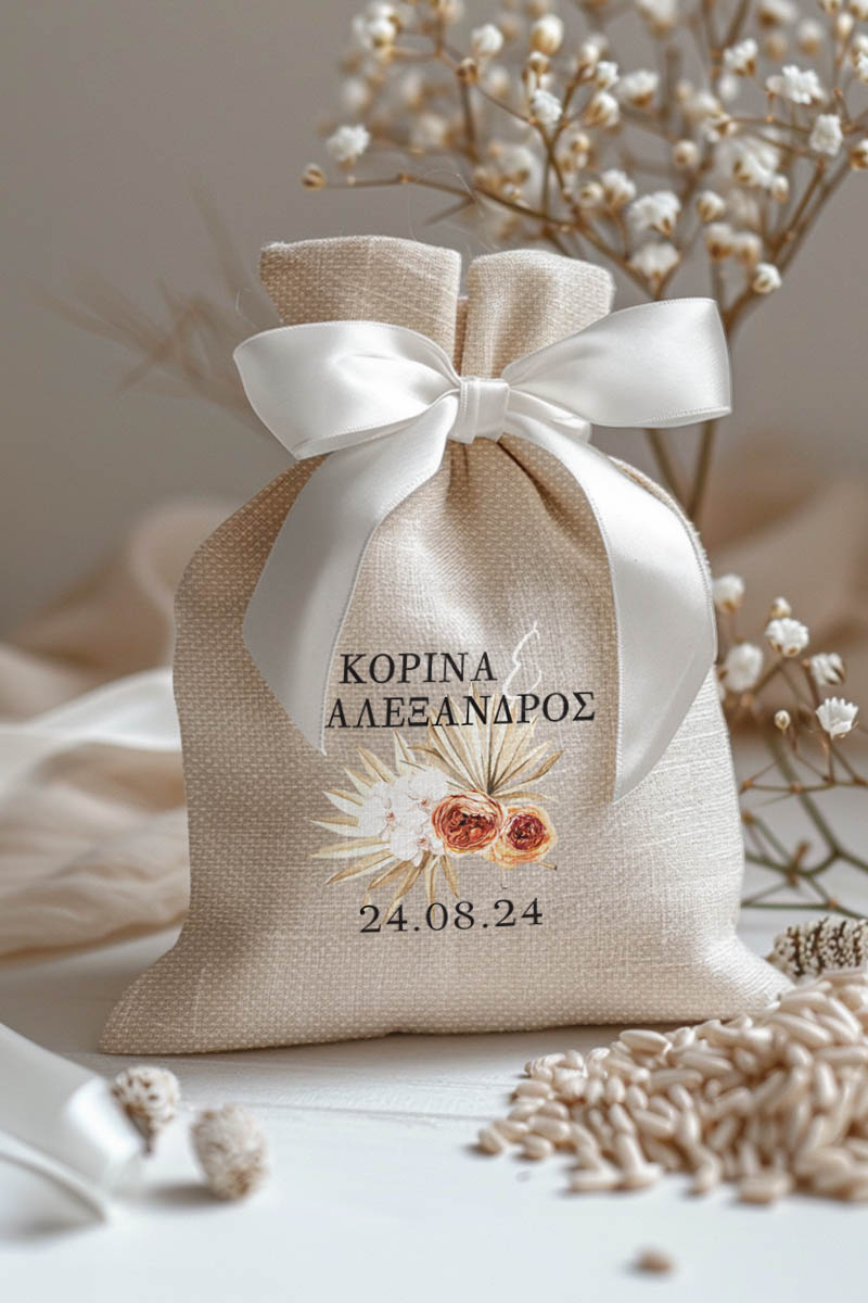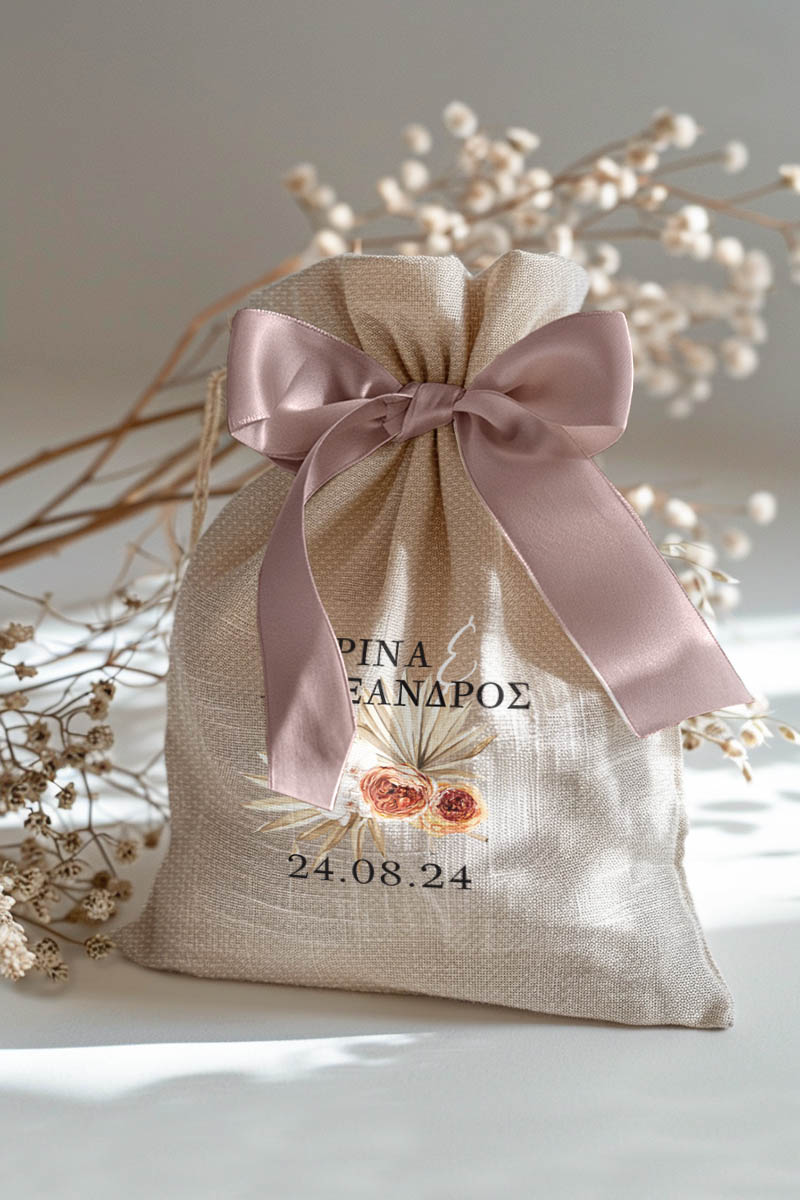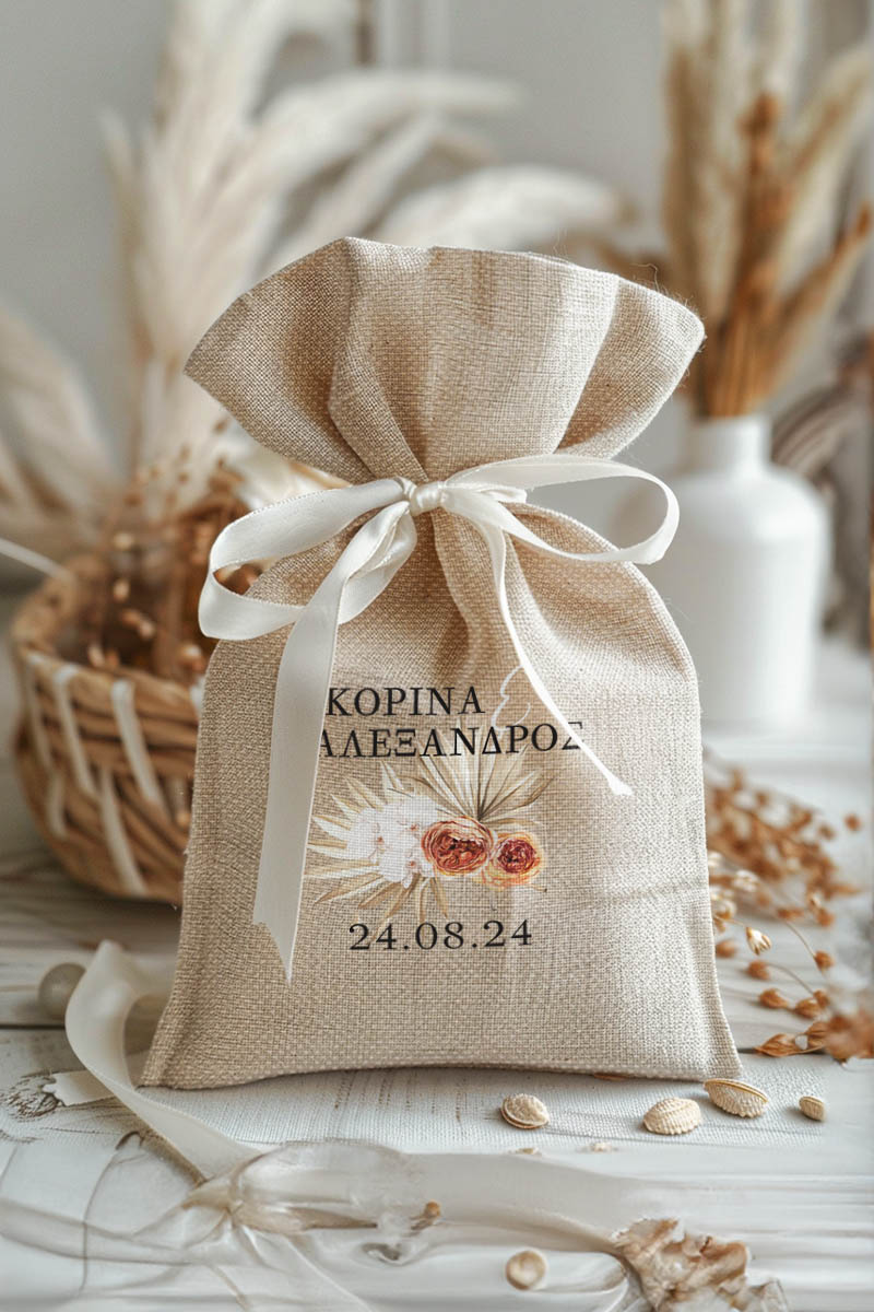 1.59€Μοντέρνες και Πρωτότυπες Μπομπονιέρες Γάμου και Βάπτισης με Πουγκί από Καμβά | Σετ Πουγκί, Εσωτερικό Τούλι & Κορδέλα Σατέν | Premium ποιότητα