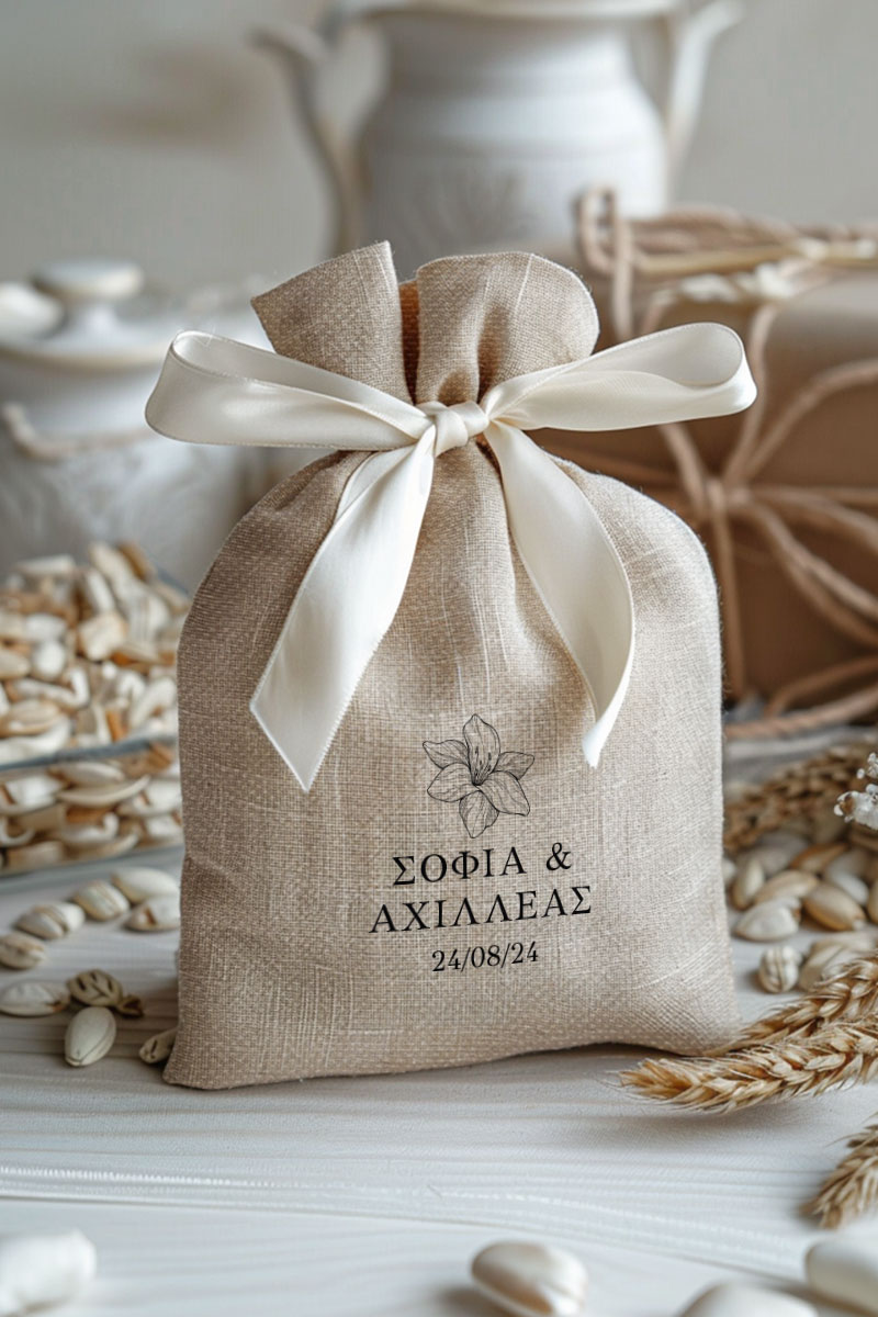 1.59€Μοντέρνες και Πρωτότυπες Μπομπονιέρες Γάμου με Πουγκί από Καμβά | Σετ Πουγκί, Εσωτερικό Τούλι & Κορδέλα Σατέν | Premium ποιότητα