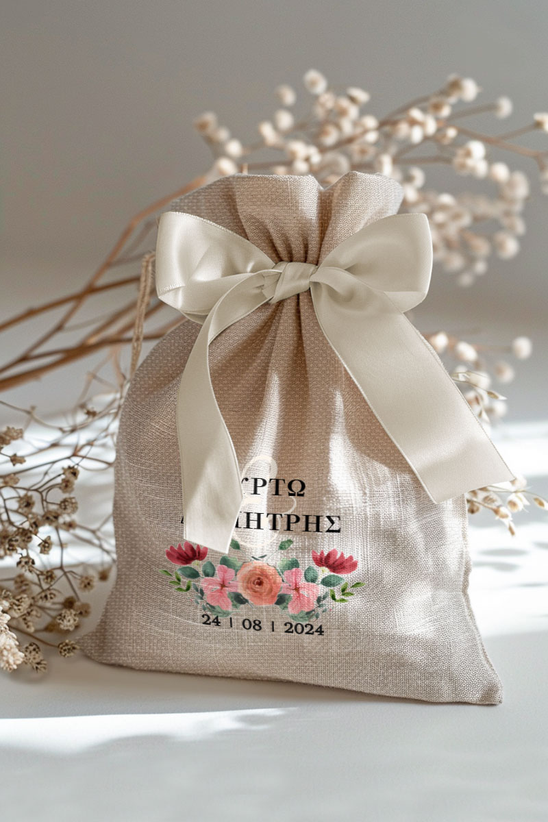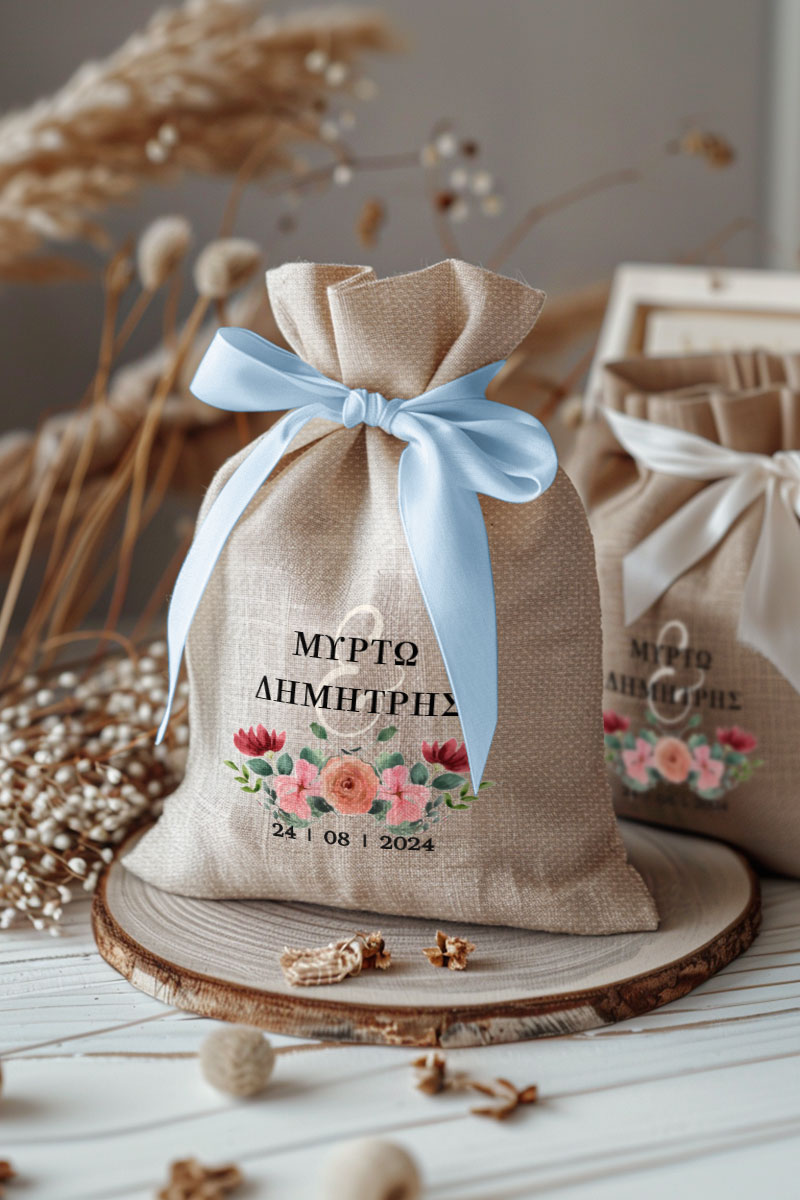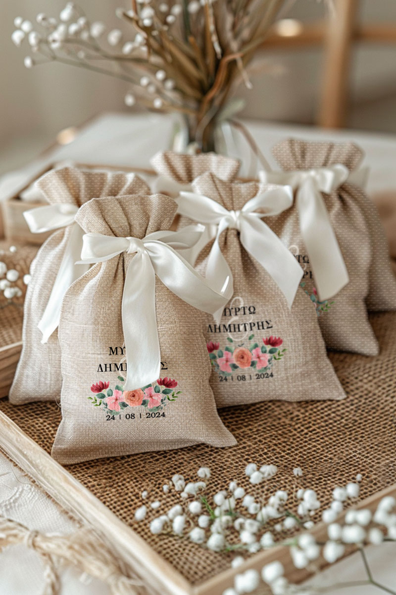 1.59€Μοντέρνες και Πρωτότυπες Μπομπονιέρες Γάμου και Βάπτισης με Πουγκί από Καμβά | Σετ Πουγκί, Εσωτερικό Τούλι & Κορδέλα Σατέν | Premium ποιότητα