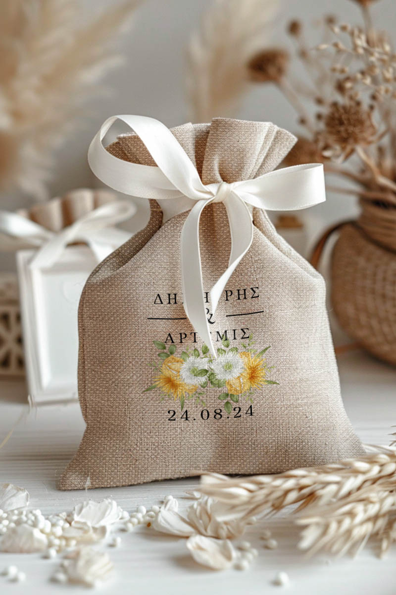 1.59€Μοντέρνες και Πρωτότυπες Μπομπονιέρες Γάμου με Πουγκί από Καμβά | Σετ Πουγκί, Εσωτερικό Τούλι & Κορδέλα Σατέν | Premium ποιότητα