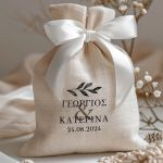 1.59€Μοντέρνες και Πρωτότυπες Μπομπονιέρες Γάμου και Βάπτισης με Πουγκί από Καμβά | Σετ Πουγκί, Εσωτερικό Τούλι & Κορδέλα Σατέν | Premium ποιότητα