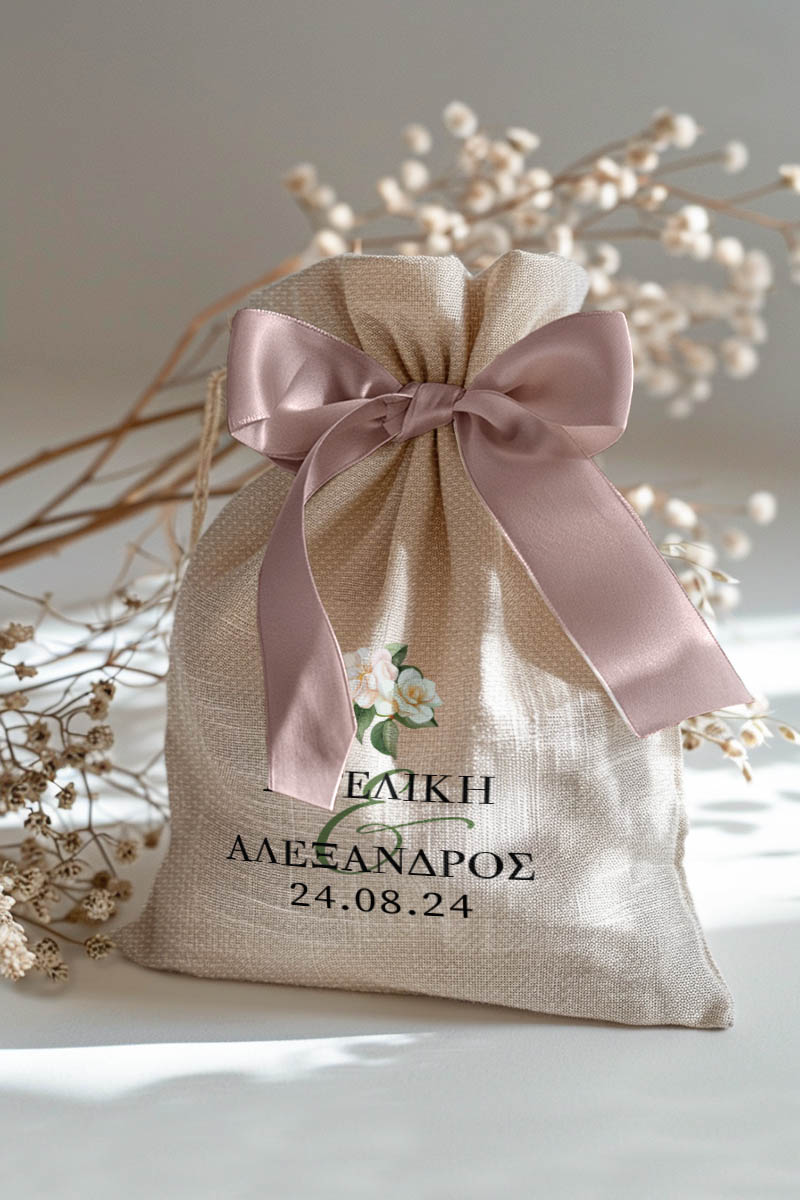 1.59€Μοντέρνες και Πρωτότυπες Μπομπονιέρες Γάμου και Βάπτισης με Πουγκί από Καμβά | Σετ Πουγκί, Εσωτερικό Τούλι & Κορδέλα Σατέν | Premium ποιότητα