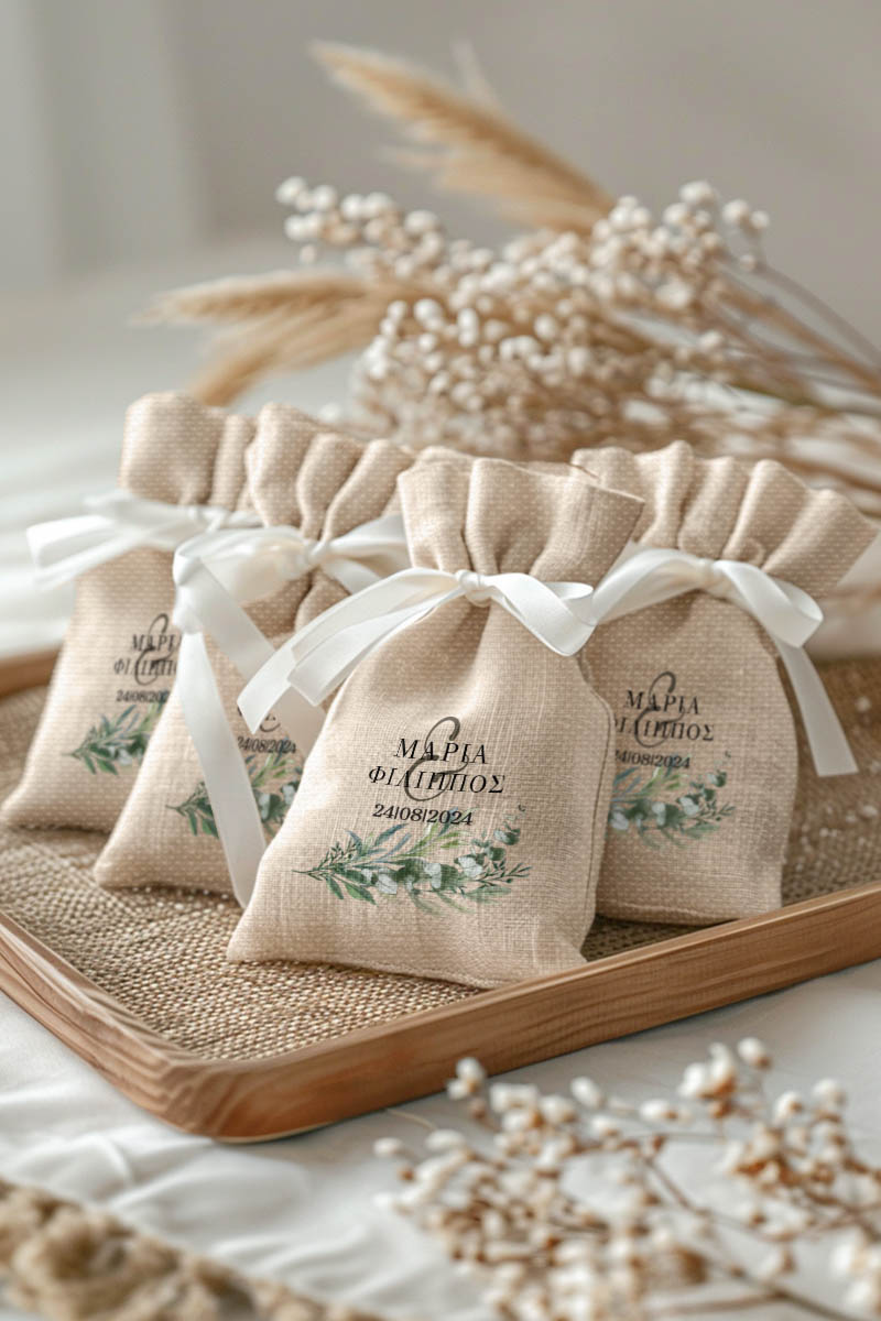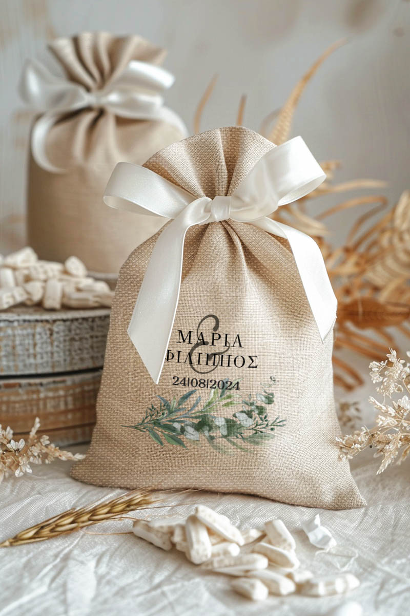 1.59€Μοντέρνες και Πρωτότυπες Μπομπονιέρες Γάμου και Βάπτισης με Πουγκί από Καμβά | Σετ Πουγκί, Εσωτερικό Τούλι & Κορδέλα Σατέν | Premium ποιότητα