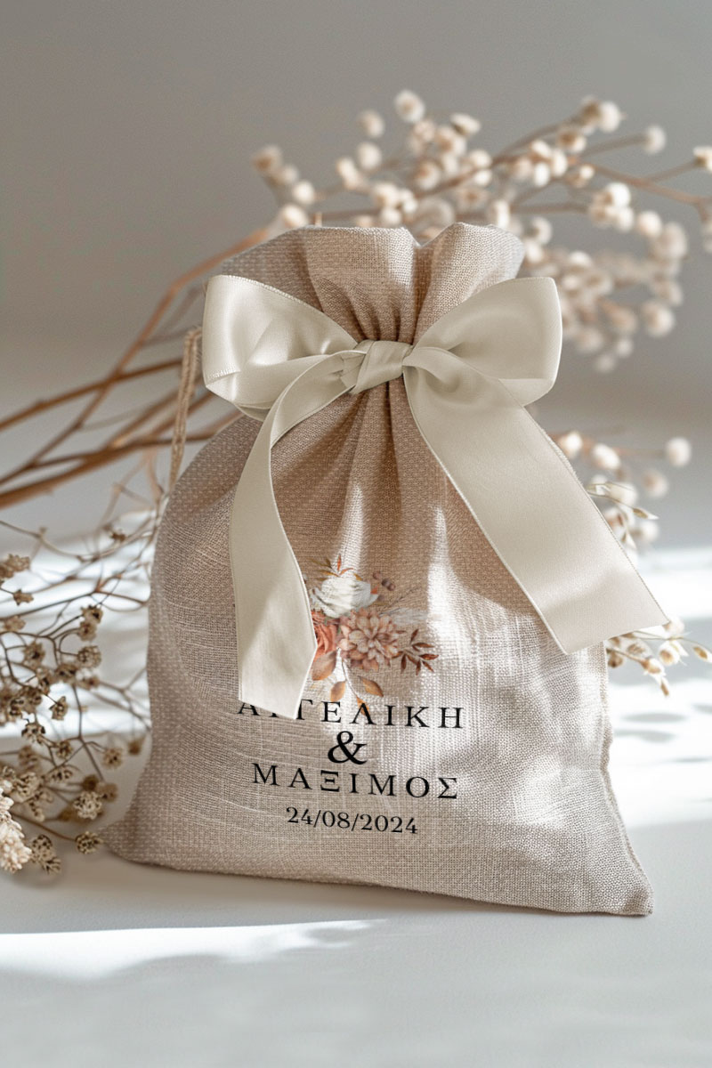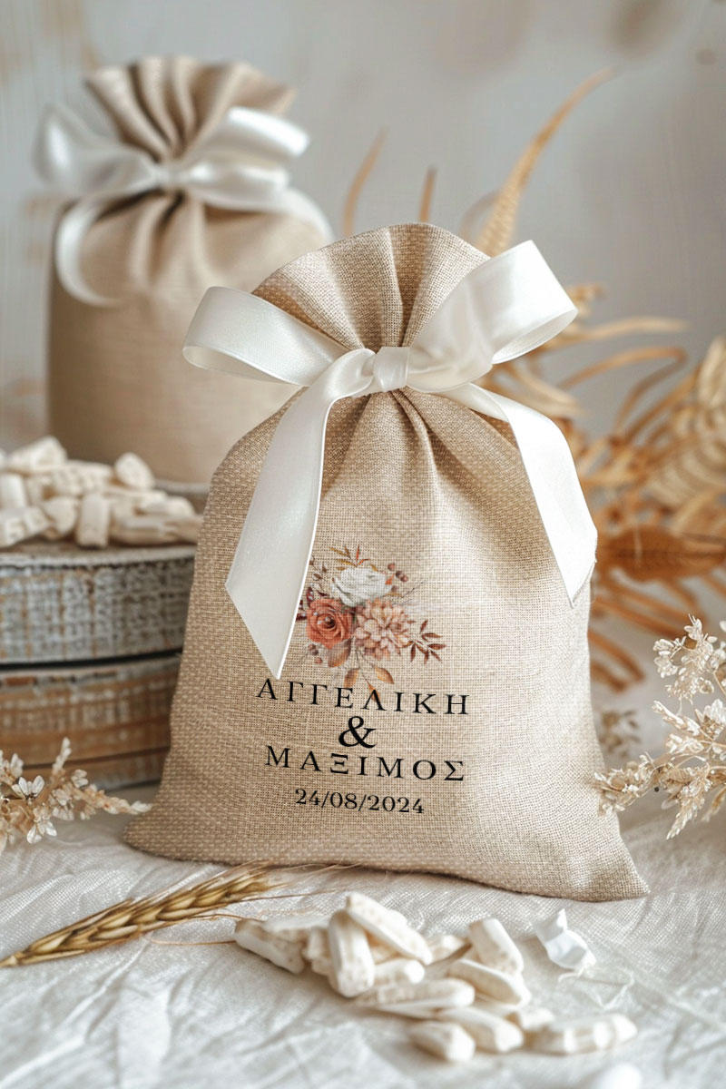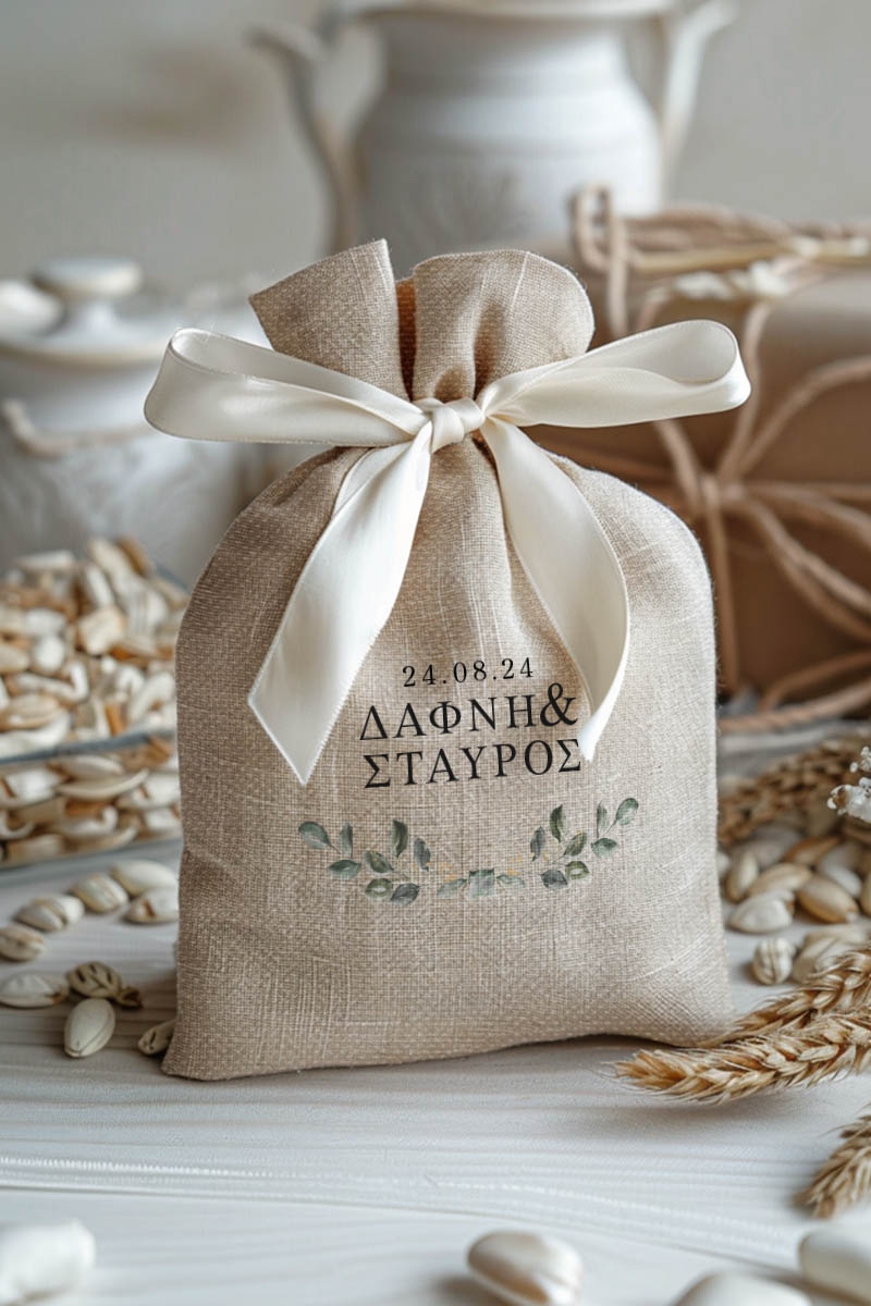 1.59€Μοντέρνες και Πρωτότυπες Μπομπονιέρες Γάμου και Βάπτισης με Πουγκί από Καμβά | Σετ Πουγκί, Εσωτερικό Τούλι & Κορδέλα Σατέν | Premium ποιότητα