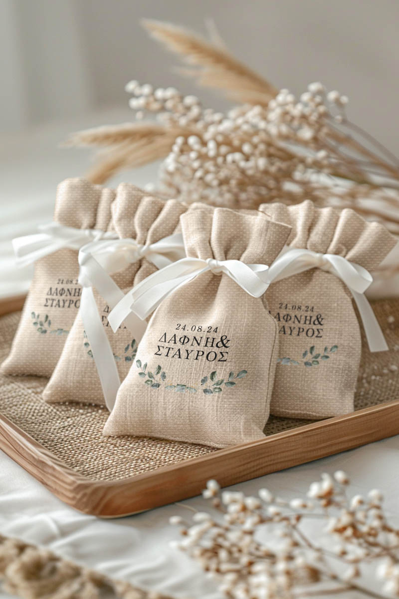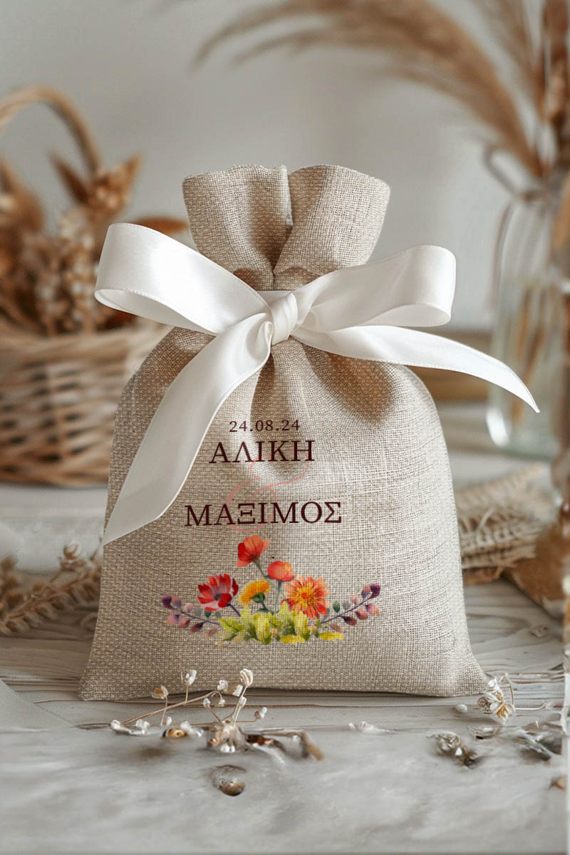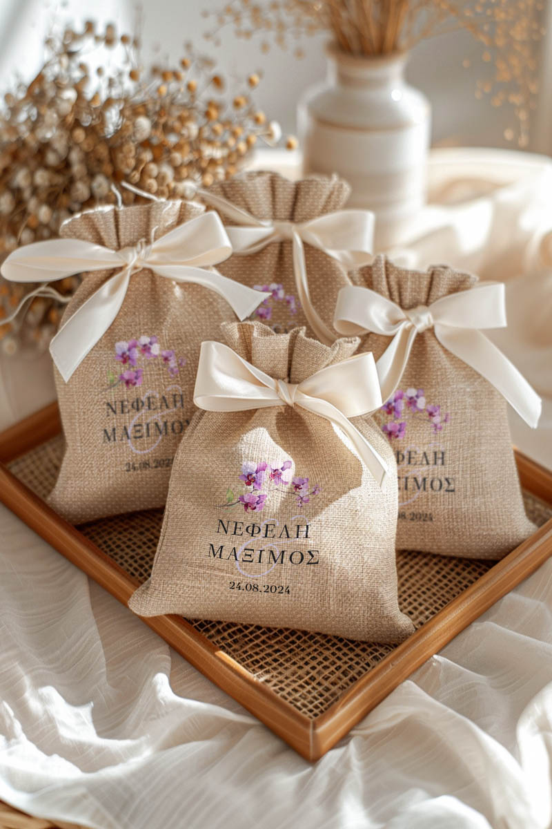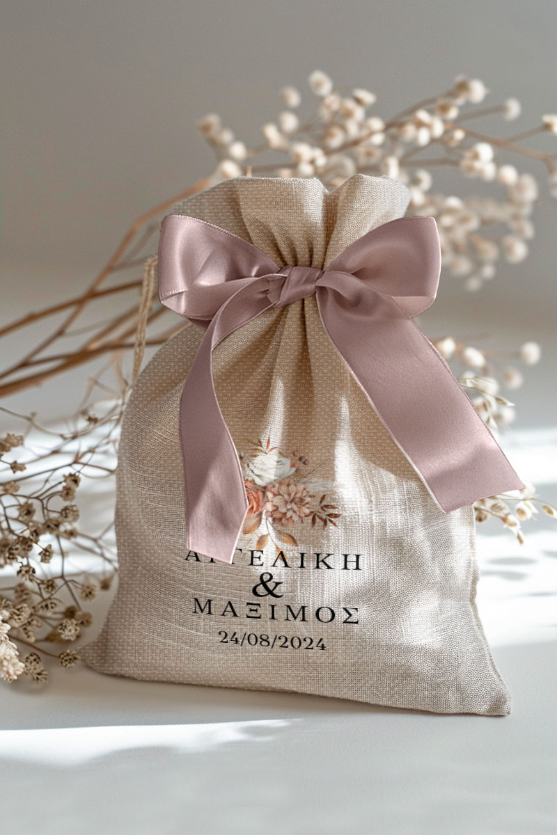 1.59€Μοντέρνες και Πρωτότυπες Μπομπονιέρες Γάμου και Βάπτισης με Πουγκί από Καμβά | Σετ Πουγκί, Εσωτερικό Τούλι & Κορδέλα Σατέν | Premium ποιότητα