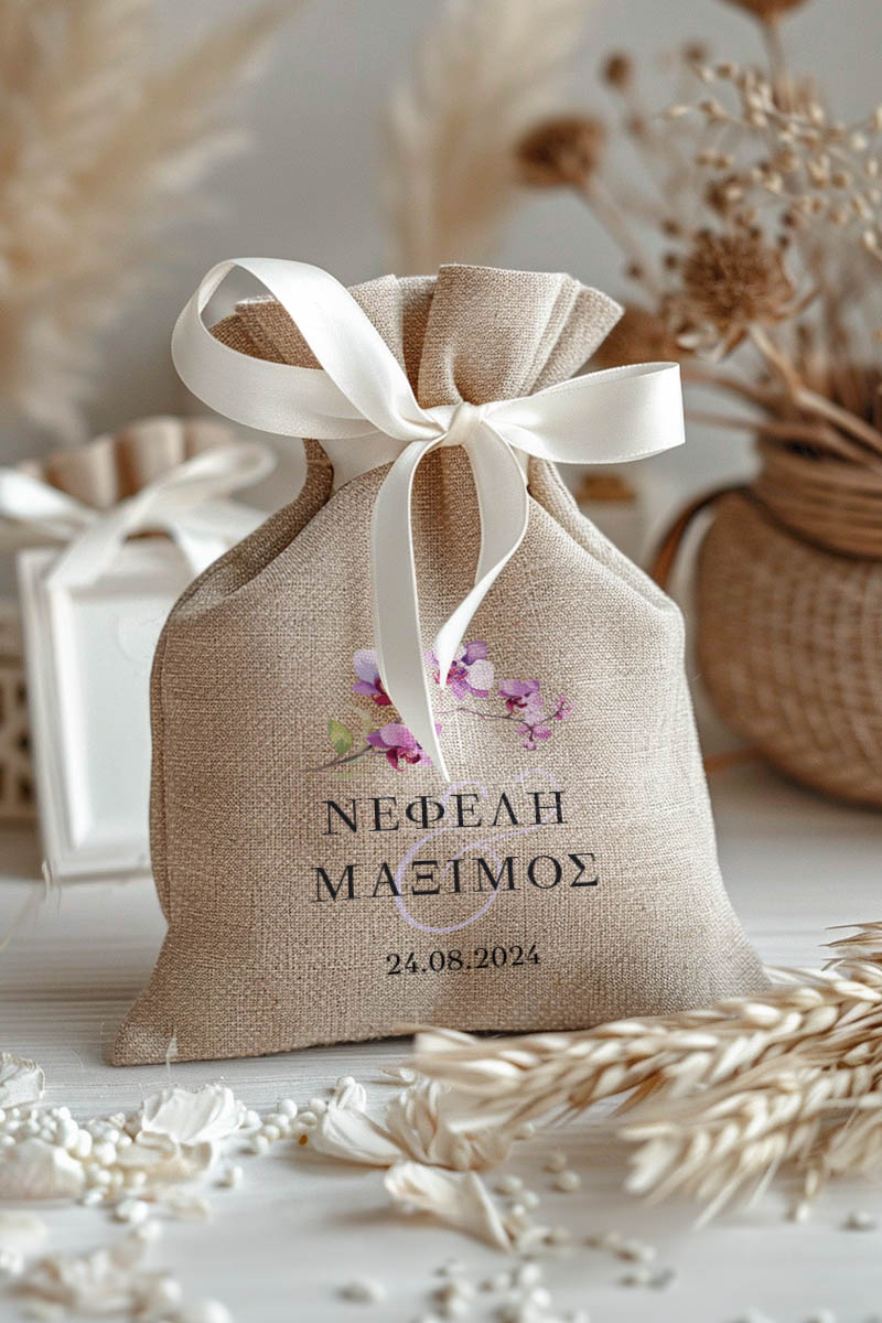 1.59€Μοντέρνες και Πρωτότυπες Μπομπονιέρες Γάμου και Βάπτισης με Πουγκί από Καμβά | Σετ Πουγκί, Εσωτερικό Τούλι & Κορδέλα Σατέν | Premium ποιότητα