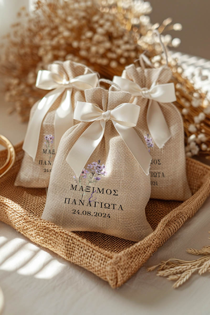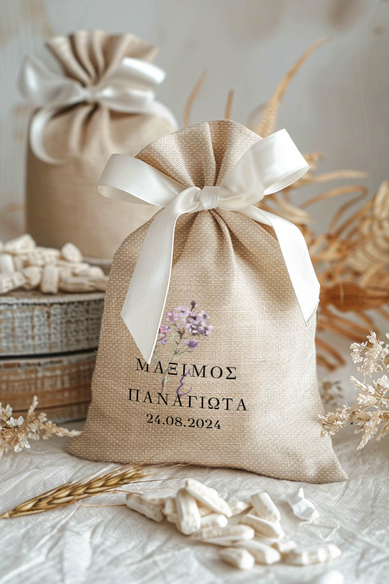 1.59€Μοντέρνες και Πρωτότυπες Μπομπονιέρες Γάμου και Βάπτισης με Πουγκί από Καμβά | Σετ Πουγκί, Εσωτερικό Τούλι & Κορδέλα Σατέν | Premium ποιότητα