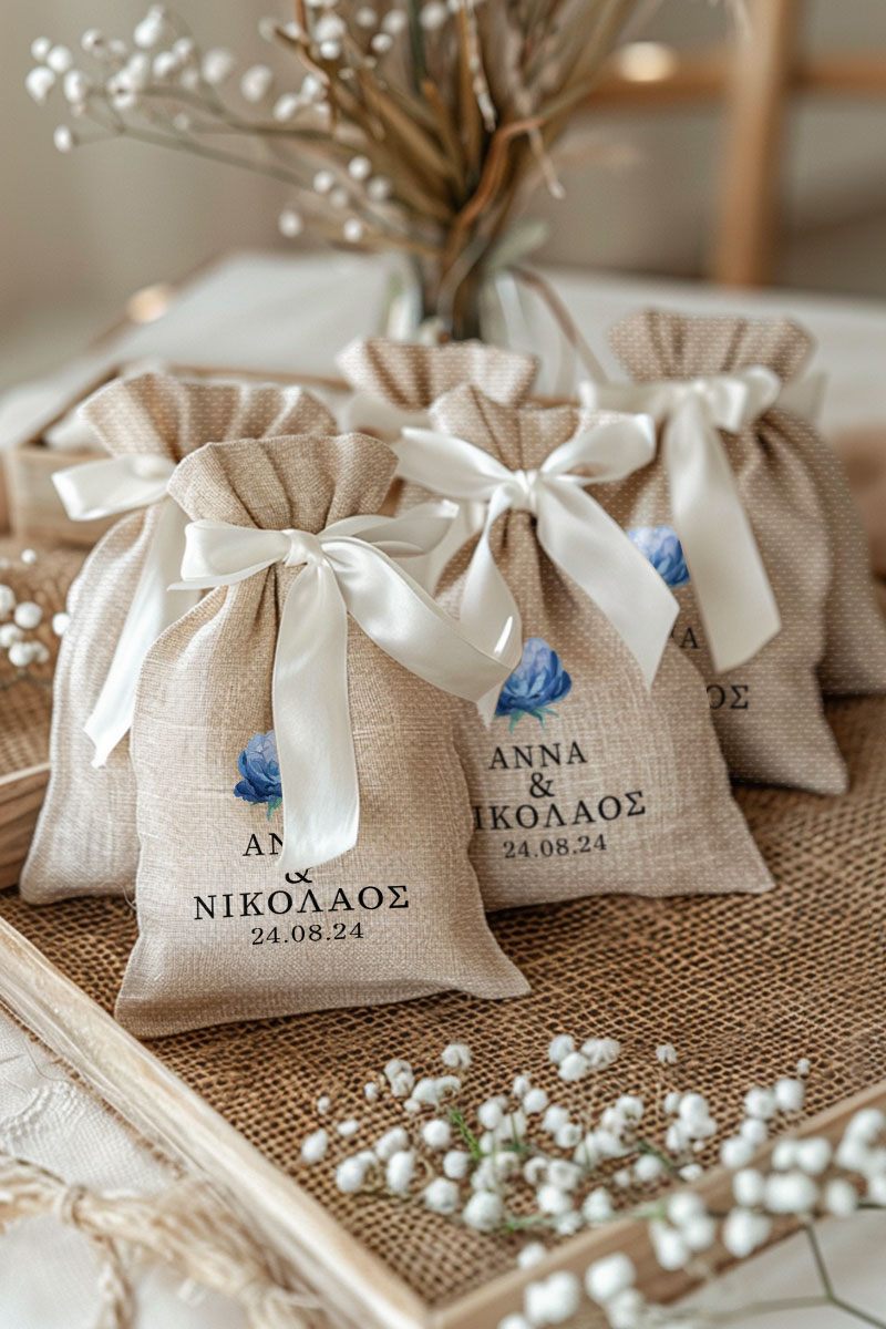 1.59€Μοντέρνες και Πρωτότυπες Μπομπονιέρες Γάμου με Πουγκί από Καμβά | Σετ Πουγκί, Εσωτερικό Τούλι & Κορδέλα Σατέν | Premium ποιότητα