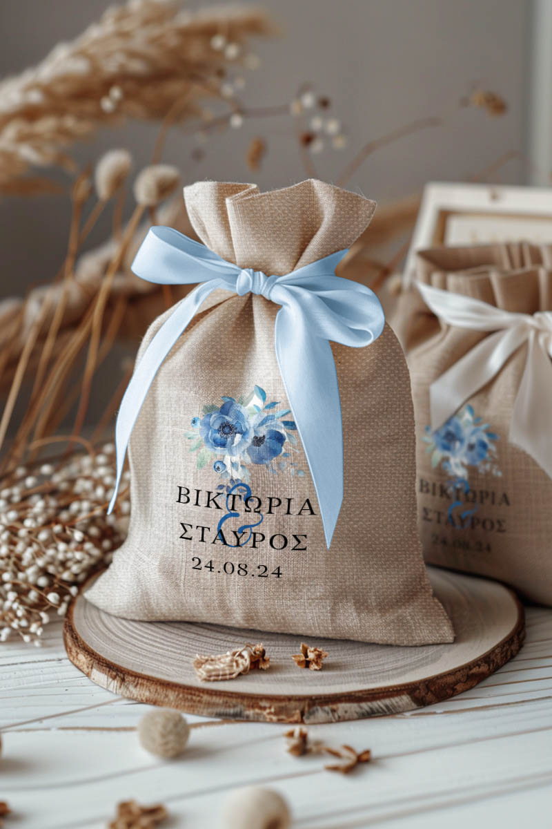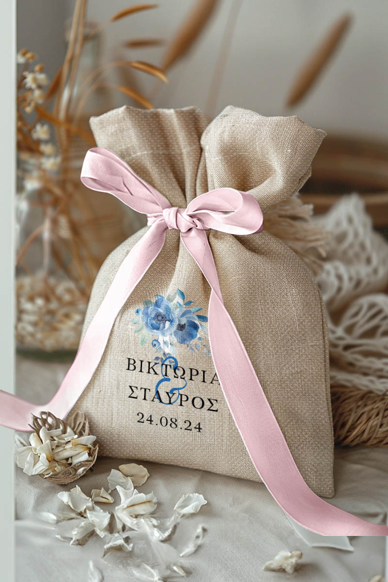 1.59€Μοντέρνες και Πρωτότυπες Μπομπονιέρες Γάμου και Βάπτισης με Πουγκί από Καμβά | Σετ Πουγκί, Εσωτερικό Τούλι & Κορδέλα Σατέν | Premium ποιότητα