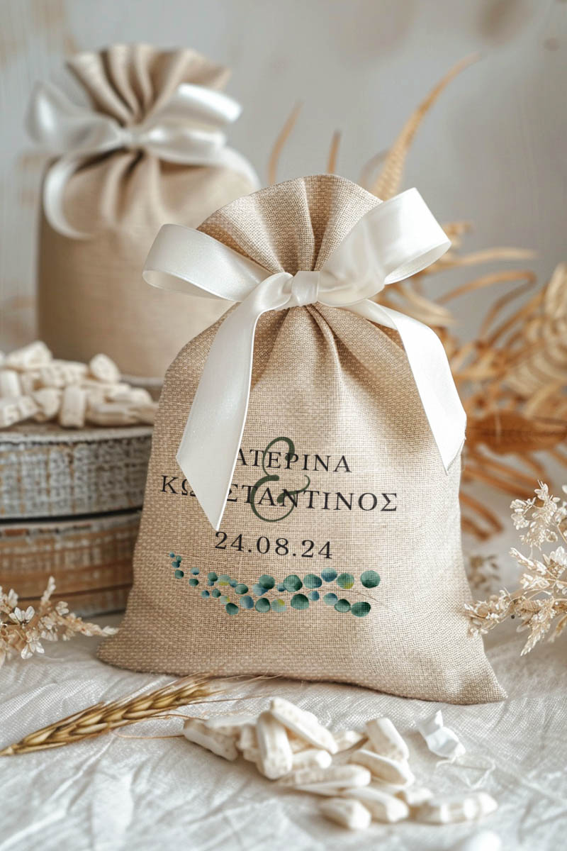 1.59€Μοντέρνες και Πρωτότυπες Μπομπονιέρες Γάμου με Πουγκί από Καμβά | Σετ Πουγκί, Εσωτερικό Τούλι & Κορδέλα Σατέν | Premium ποιότητα