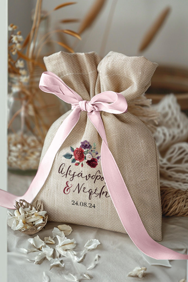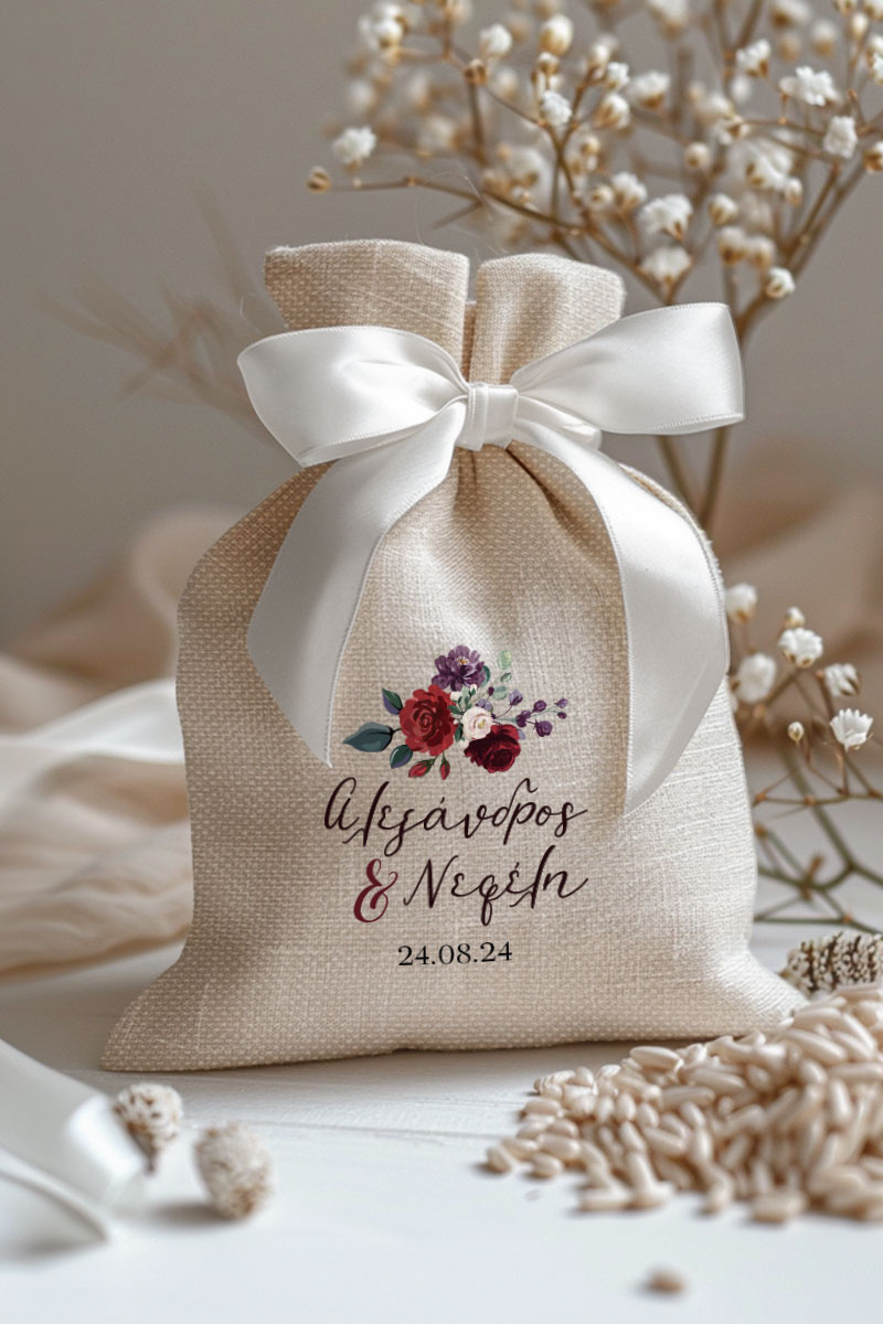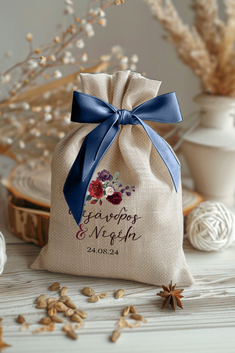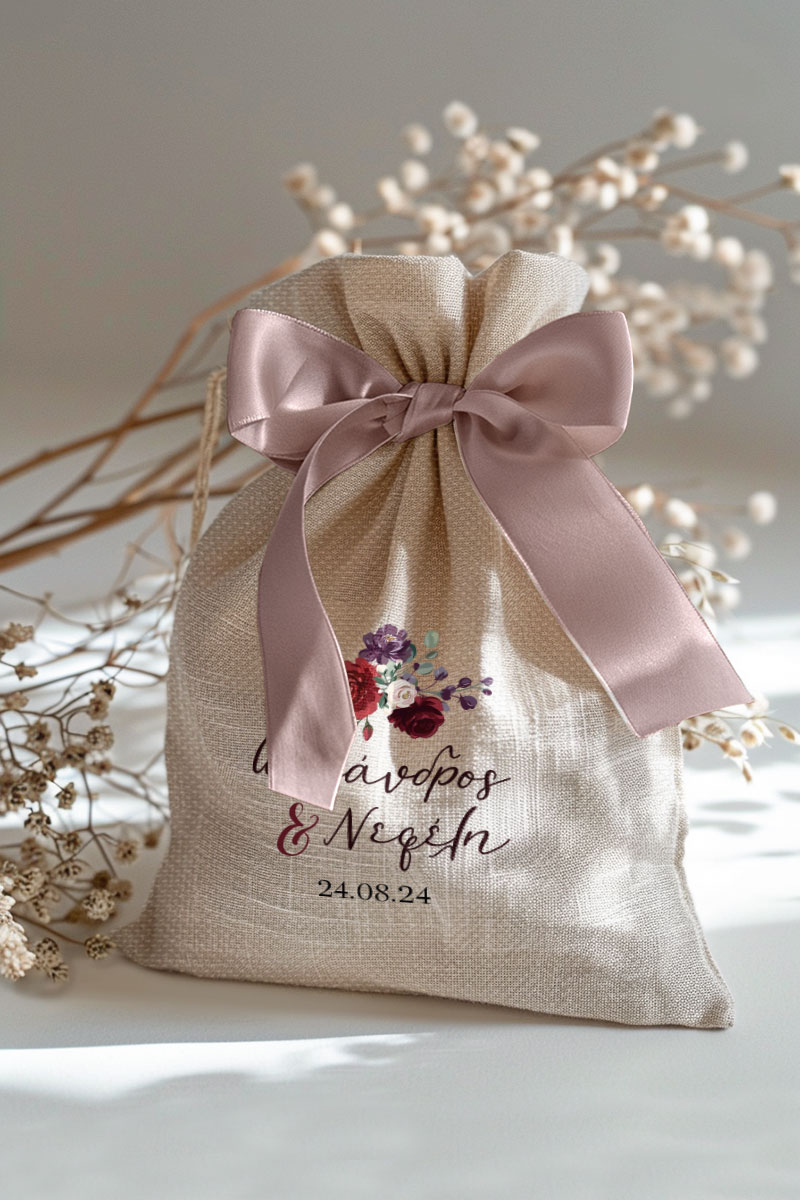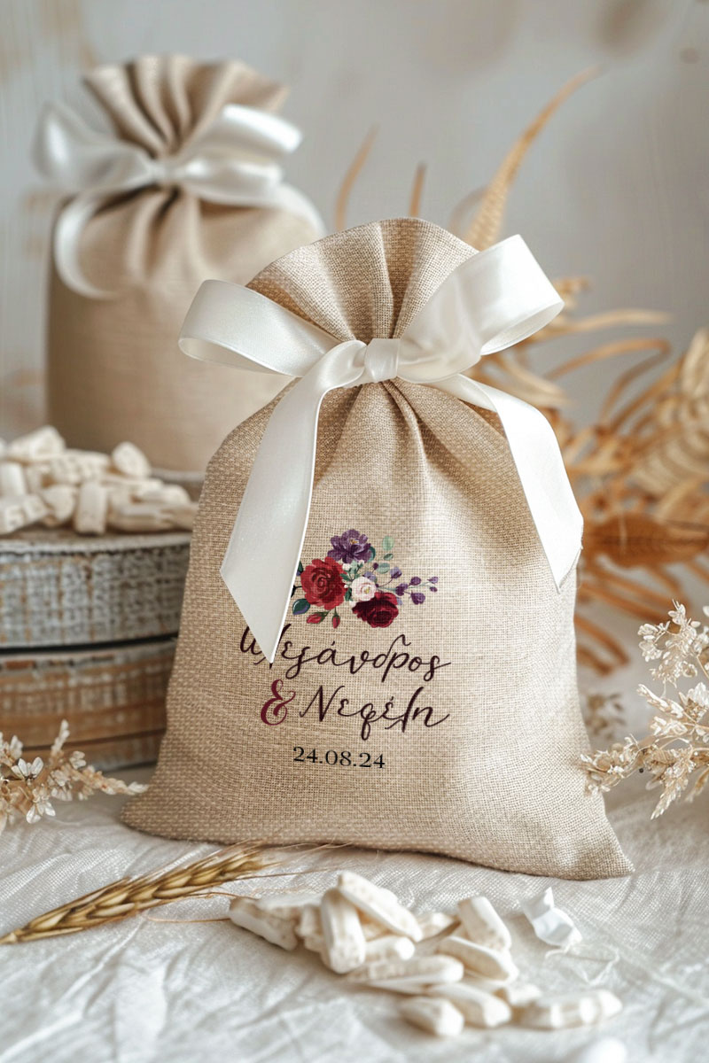 1.59€Μοντέρνες και Πρωτότυπες Μπομπονιέρες Γάμου και Βάπτισης με Πουγκί από Καμβά | Σετ Πουγκί, Εσωτερικό Τούλι & Κορδέλα Σατέν | Premium ποιότητα