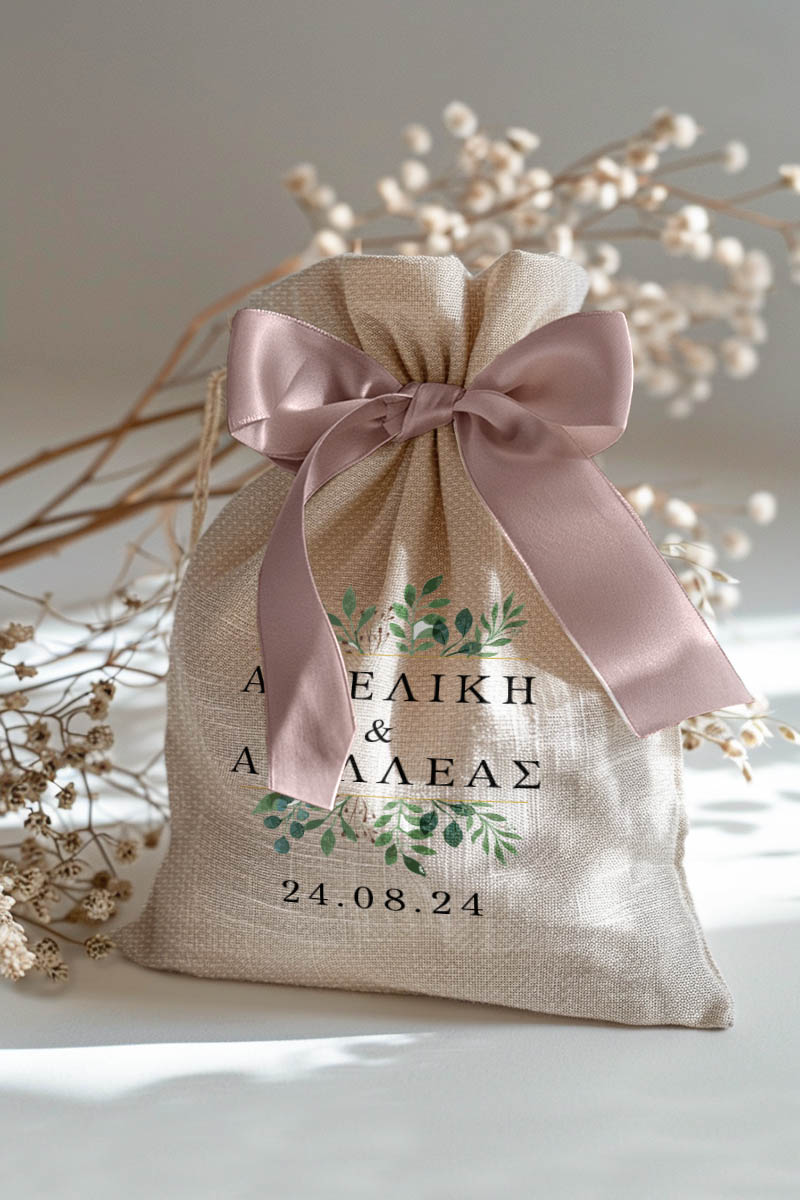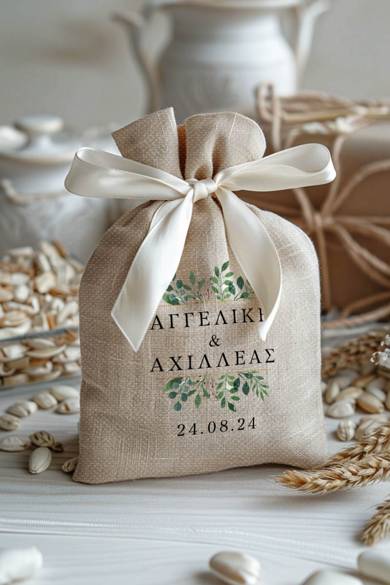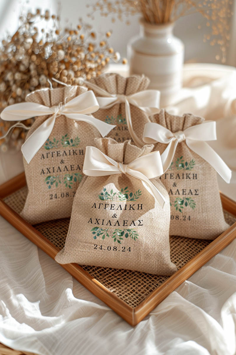 1.59€Μοντέρνες και Πρωτότυπες Μπομπονιέρες Γάμου και Βάπτισης με Πουγκί από Καμβά | Σετ Πουγκί, Εσωτερικό Τούλι & Κορδέλα Σατέν | Premium ποιότητα