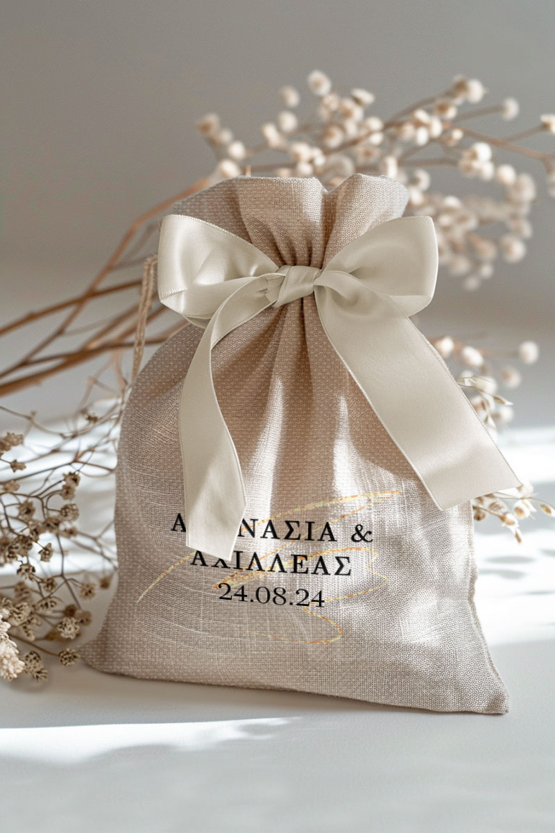 1.59€Μοντέρνες και Πρωτότυπες Μπομπονιέρες Γάμου με Πουγκί από Καμβά | Σετ Πουγκί, Εσωτερικό Τούλι & Κορδέλα Σατέν | Premium ποιότητα