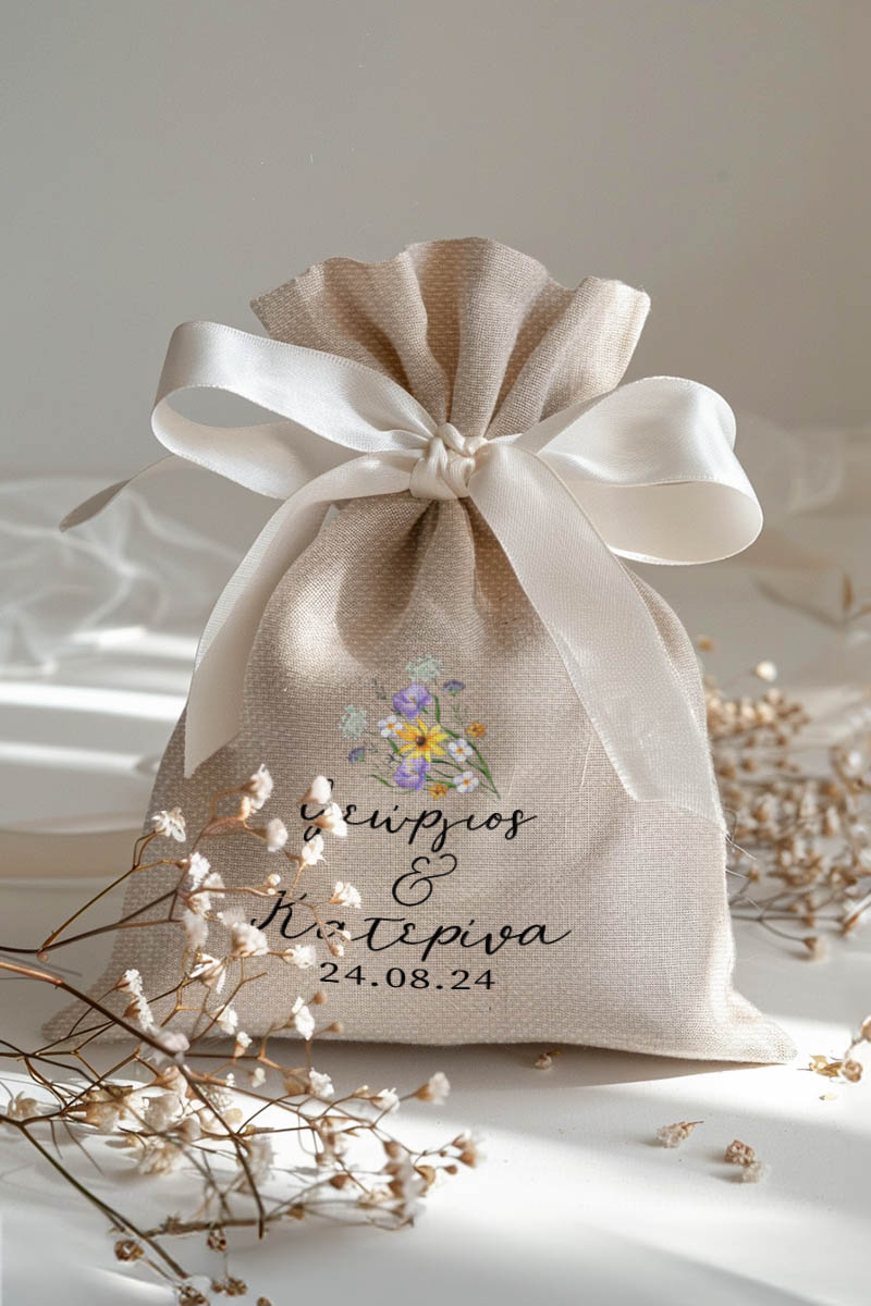1.59€Μοντέρνες και Πρωτότυπες Μπομπονιέρες Γάμου με Πουγκί από Καμβά | Σετ Πουγκί, Εσωτερικό Τούλι & Κορδέλα Σατέν | Premium ποιότητα