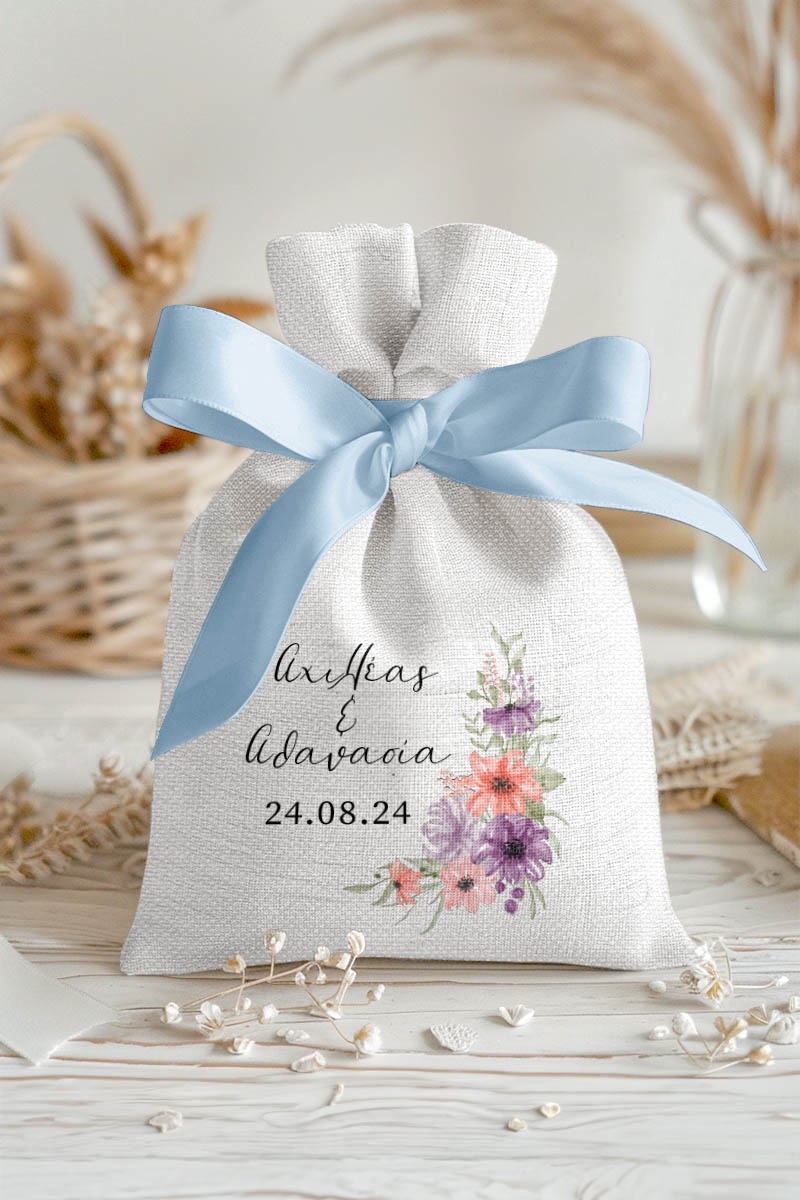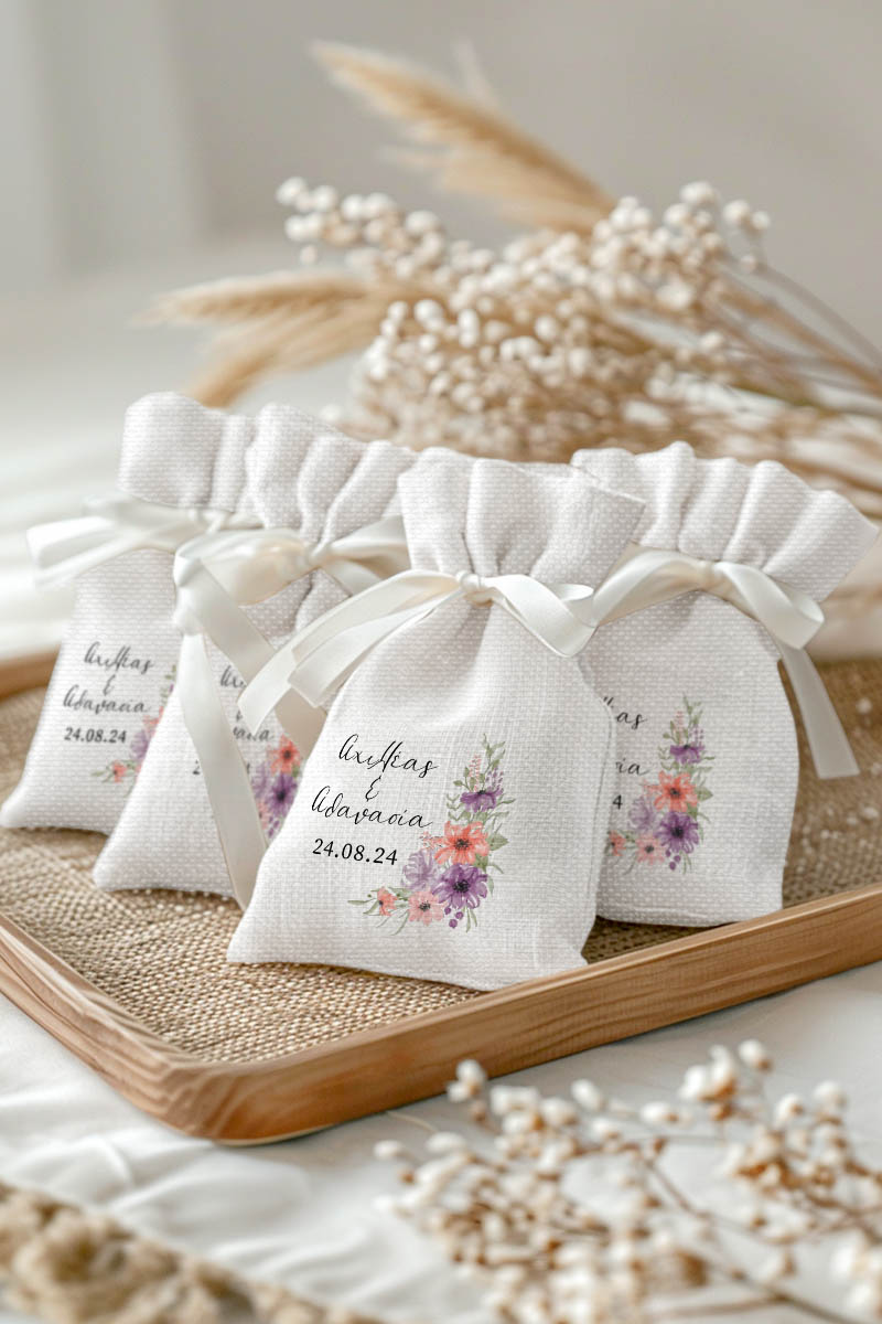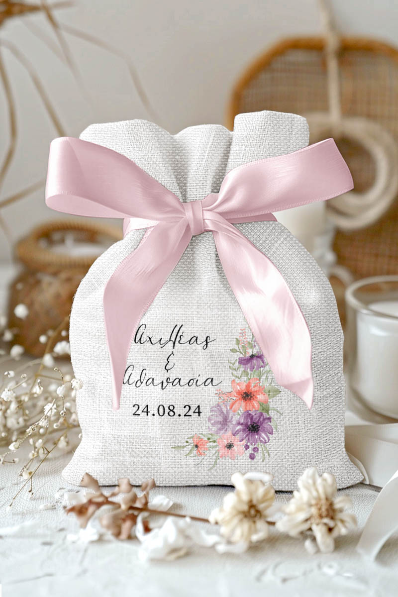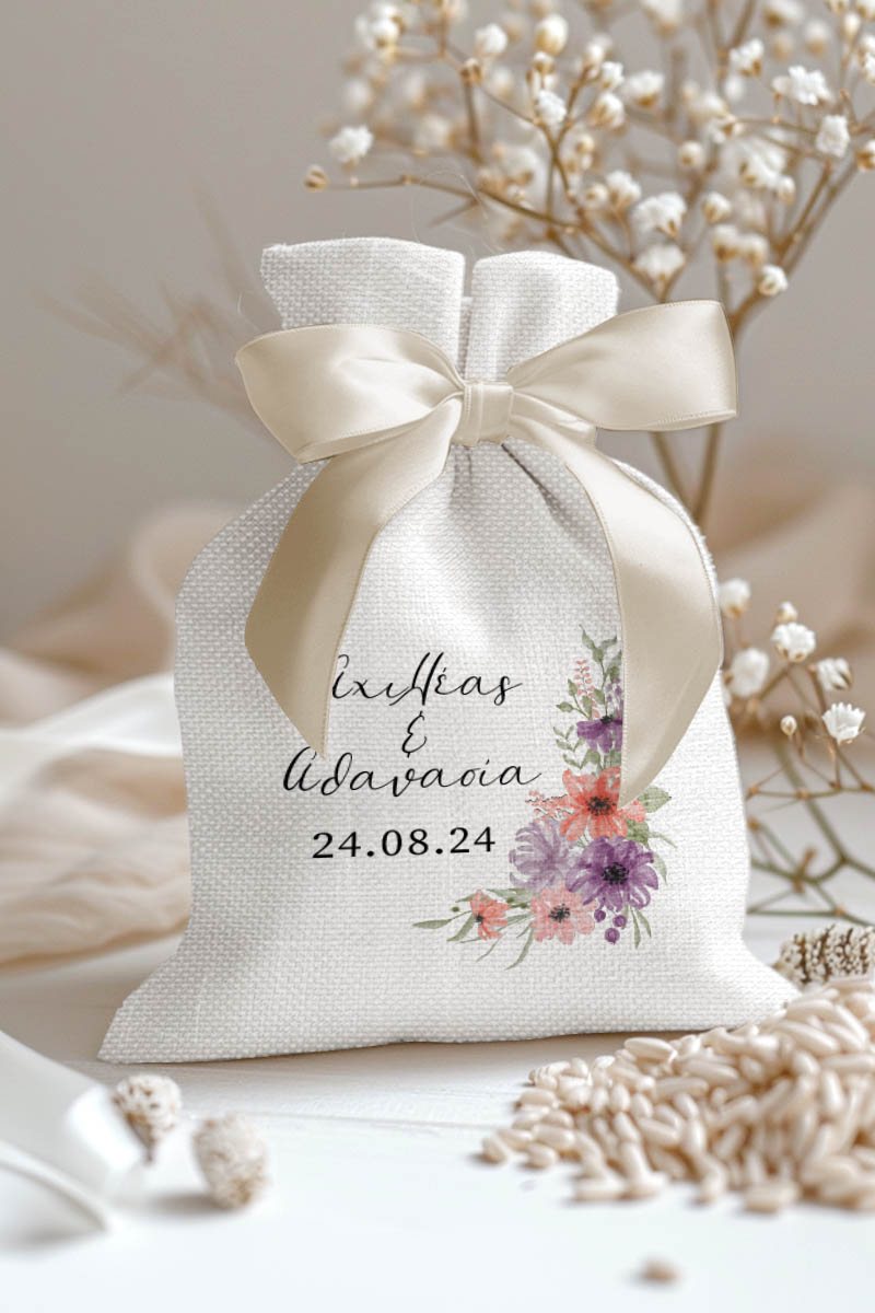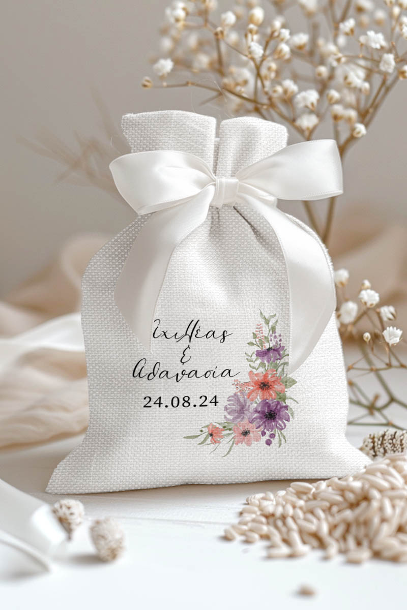 1.59€Μοντέρνες και Πρωτότυπες Μπομπονιέρες Γάμου και Βάπτισης με Πουγκί από Καμβά | Σετ Πουγκί, Εσωτερικό Τούλι & Κορδέλα Σατέν | Premium ποιότητα