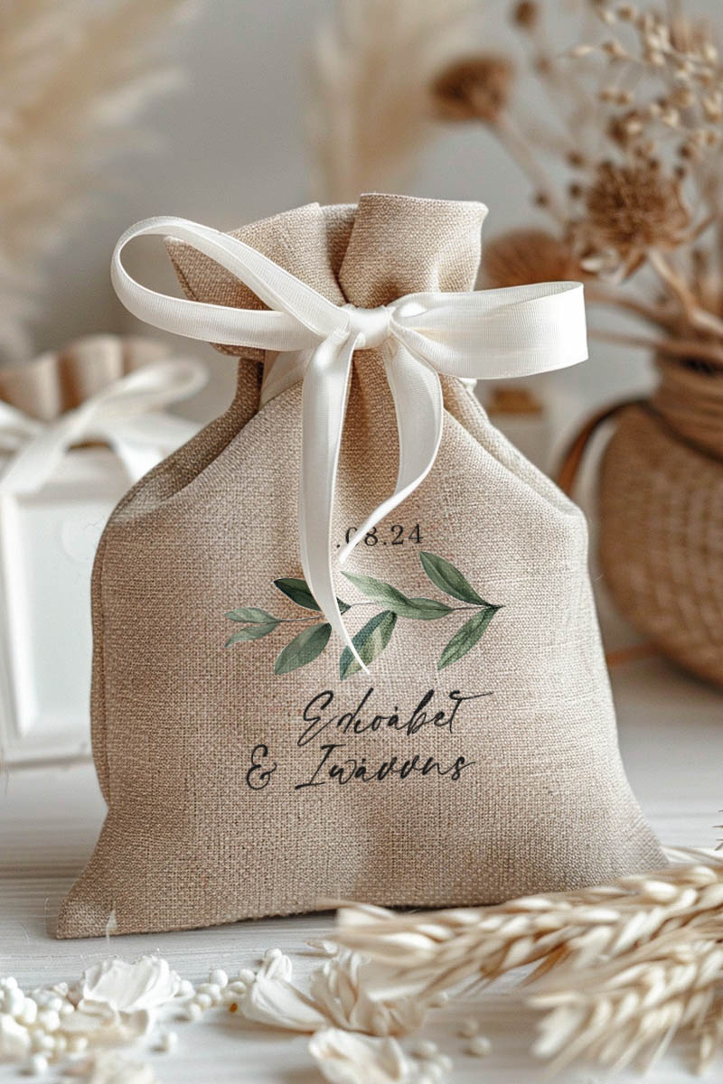 1.59€Μοντέρνες και Πρωτότυπες Μπομπονιέρες Γάμου με Πουγκί από Καμβά | Σετ Πουγκί, Εσωτερικό Τούλι & Κορδέλα Σατέν | Premium ποιότητα
