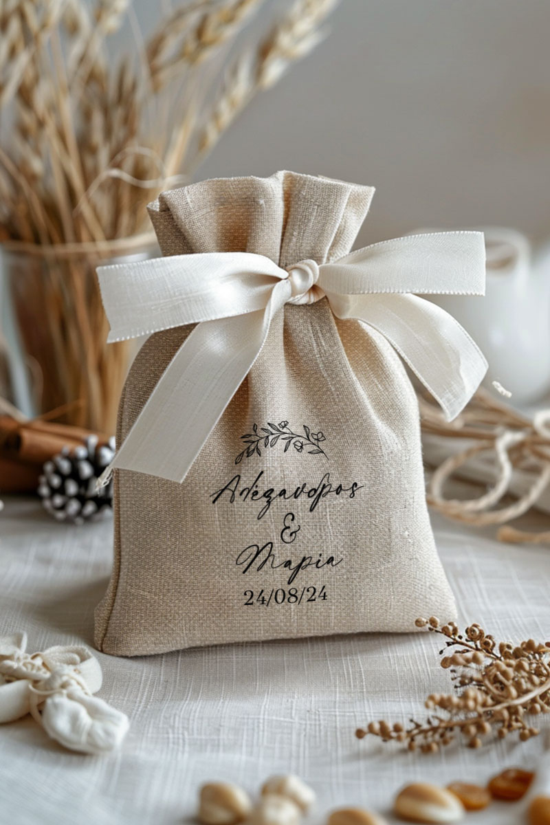 1.59€Μοντέρνες και Πρωτότυπες Μπομπονιέρες Γάμου και Βάπτισης με Πουγκί από Καμβά | Σετ Πουγκί, Εσωτερικό Τούλι & Κορδέλα Σατέν | Premium ποιότητα