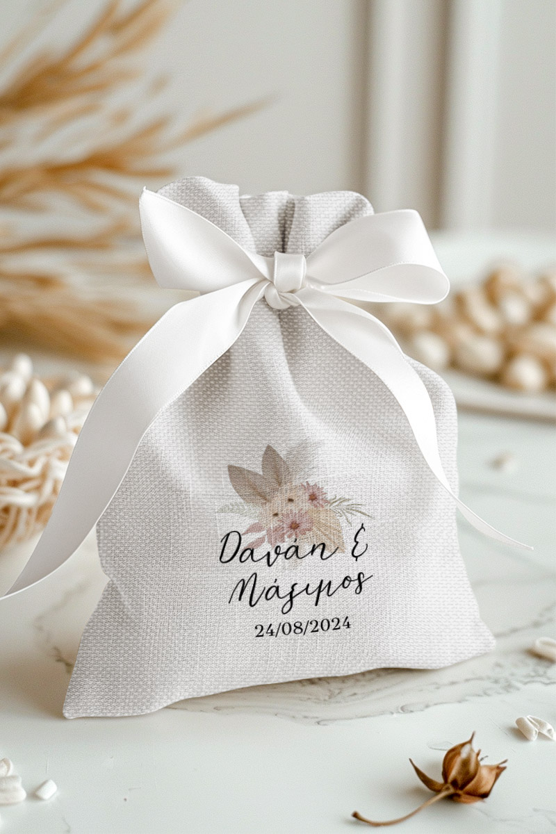 1.59€Μοντέρνες και Πρωτότυπες Μπομπονιέρες Γάμου με Πουγκί από Καμβά | Σετ Πουγκί, Εσωτερικό Τούλι & Κορδέλα Σατέν | Premium ποιότητα