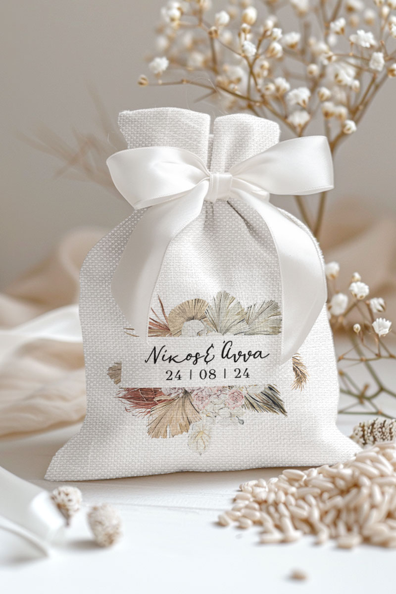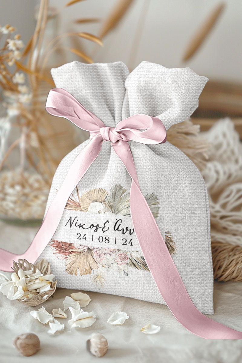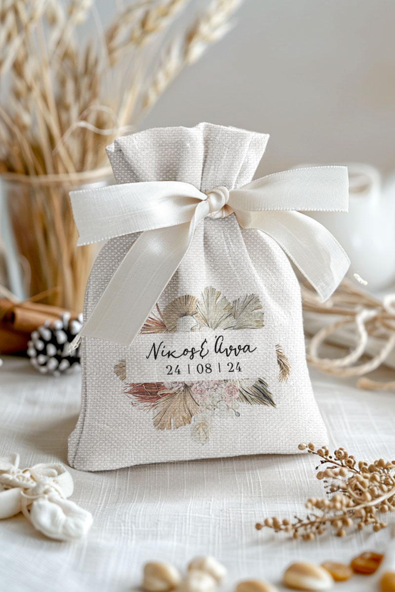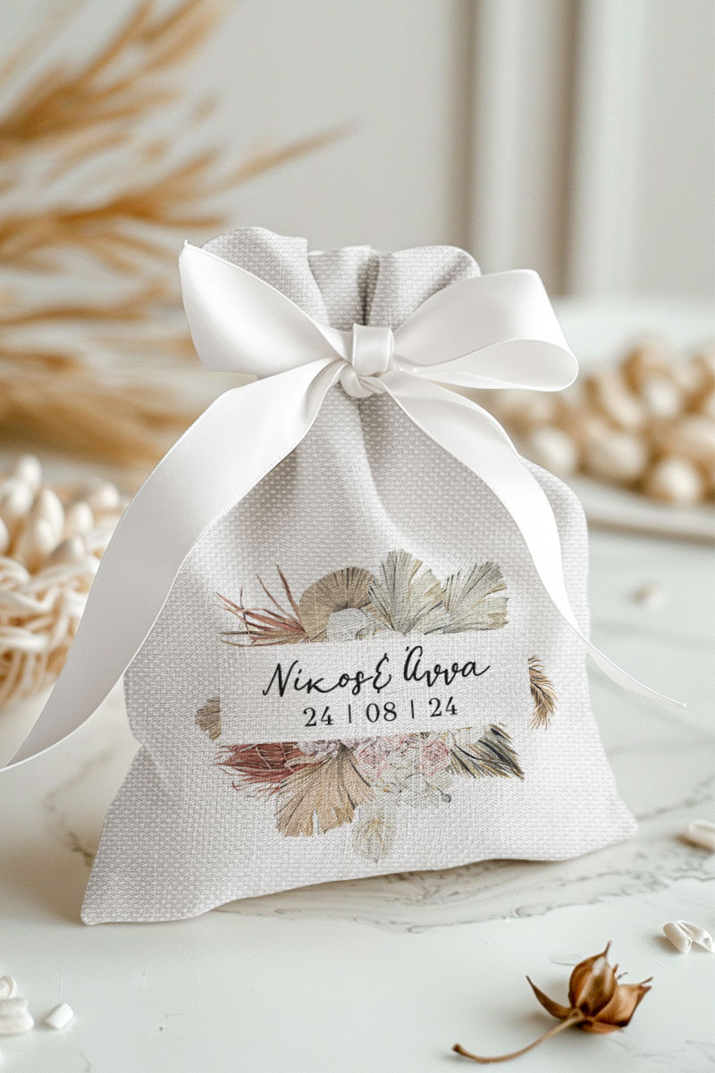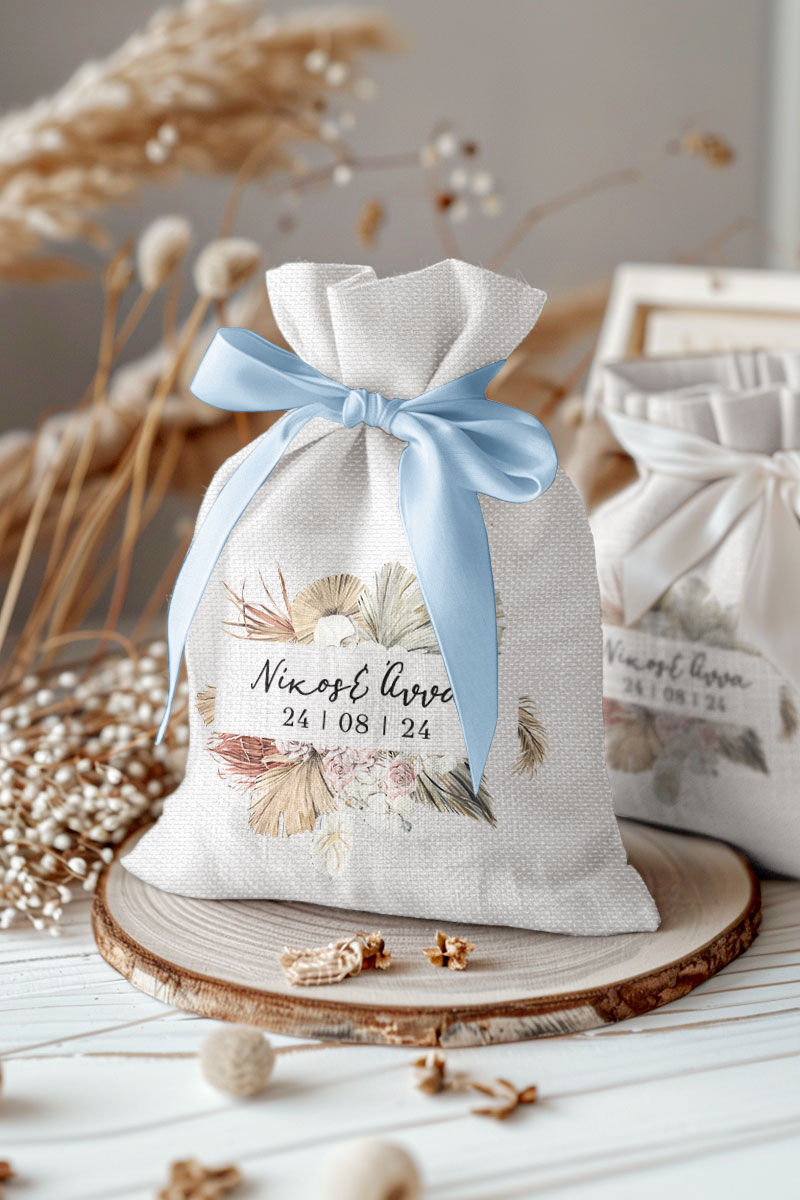 1.59€Μοντέρνες και Πρωτότυπες Μπομπονιέρες Γάμου και Βάπτισης με Πουγκί από Καμβά | Σετ Πουγκί, Εσωτερικό Τούλι & Κορδέλα Σατέν | Premium ποιότητα
