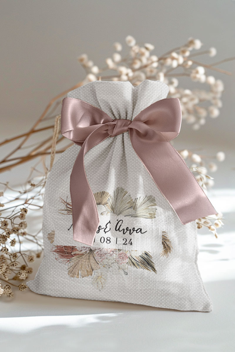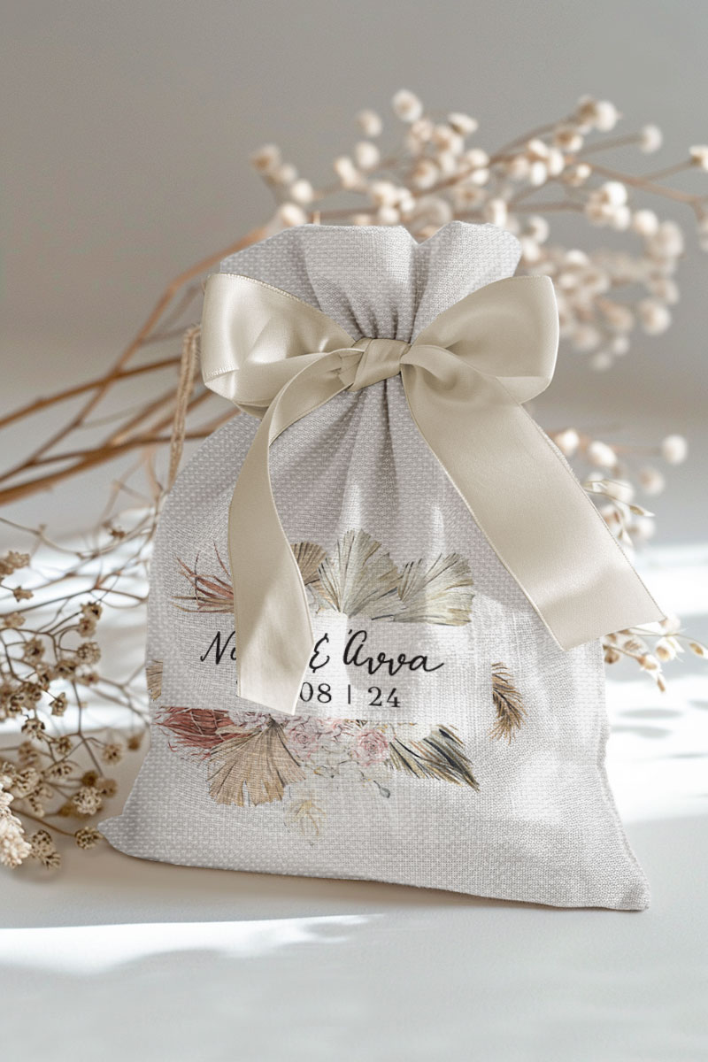 1.59€Μοντέρνες και Πρωτότυπες Μπομπονιέρες Γάμου με Πουγκί από Καμβά | Σετ Πουγκί, Εσωτερικό Τούλι & Κορδέλα Σατέν | Premium ποιότητα