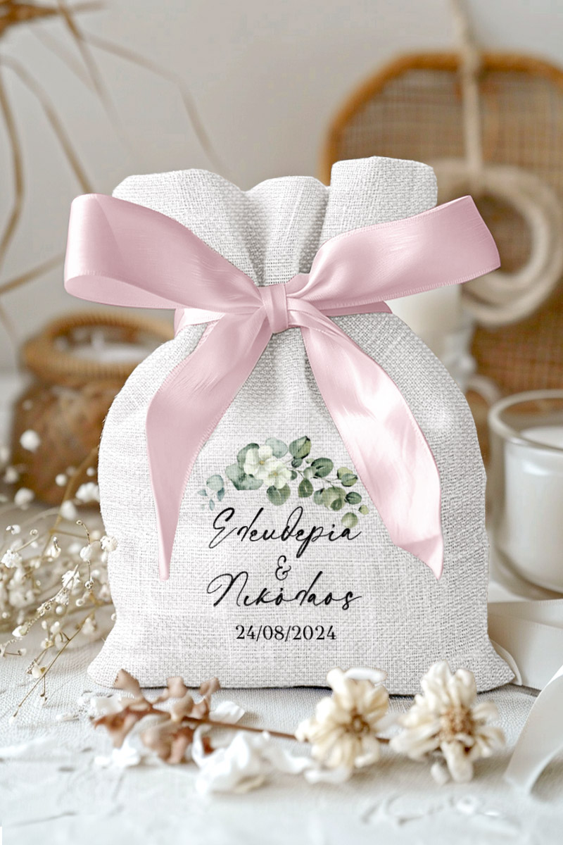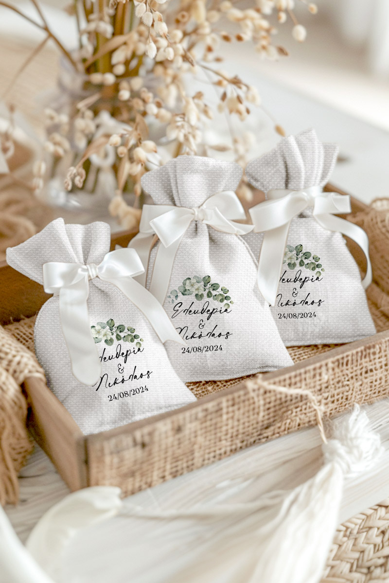 1.59€Μοντέρνες και Πρωτότυπες Μπομπονιέρες Γάμου και Βάπτισης με Πουγκί από Καμβά | Σετ Πουγκί, Εσωτερικό Τούλι & Κορδέλα Σατέν | Premium ποιότητα