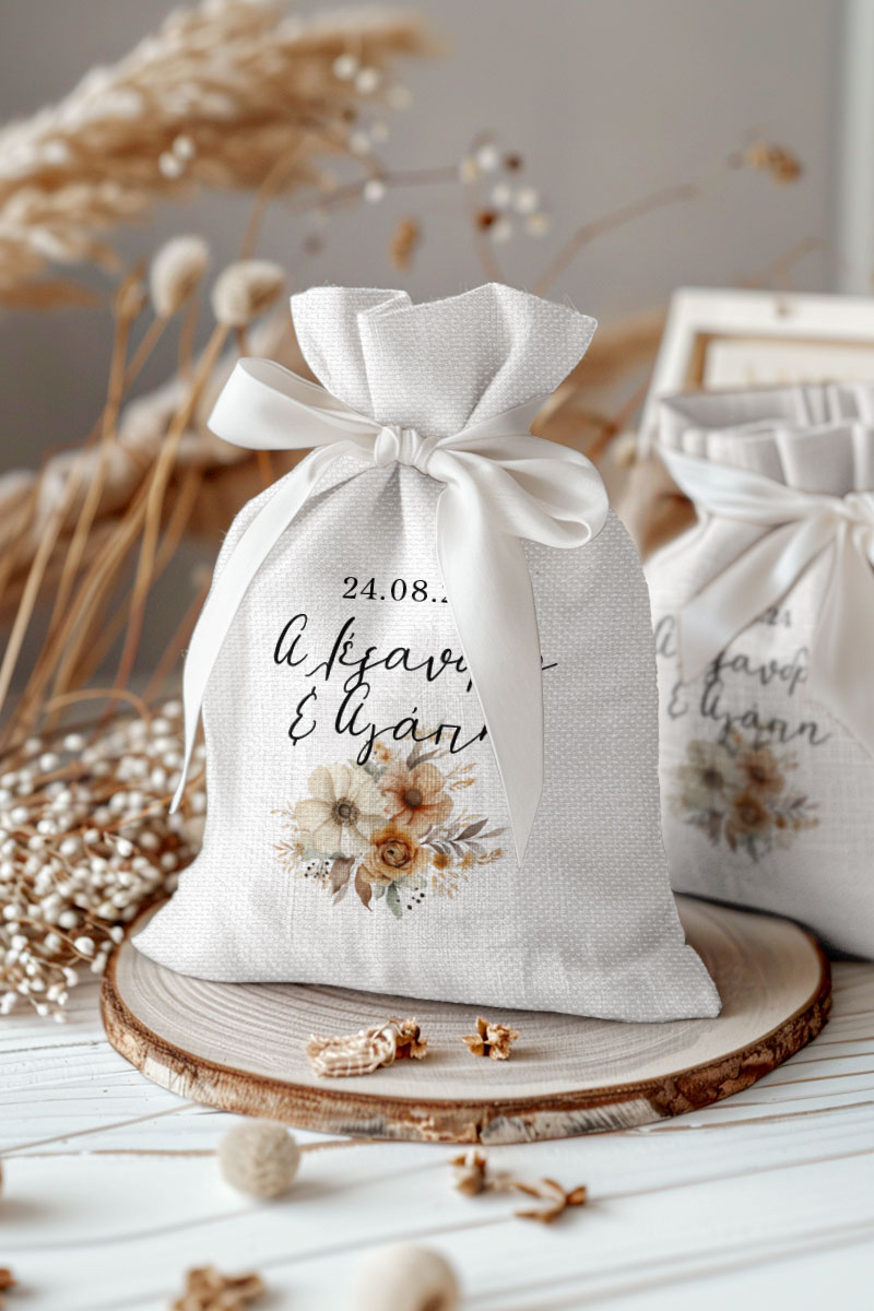 1.59€Μοντέρνες και Πρωτότυπες Μπομπονιέρες Γάμου και Βάπτισης με Πουγκί από Καμβά | Σετ Πουγκί, Εσωτερικό Τούλι & Κορδέλα Σατέν | Premium ποιότητα