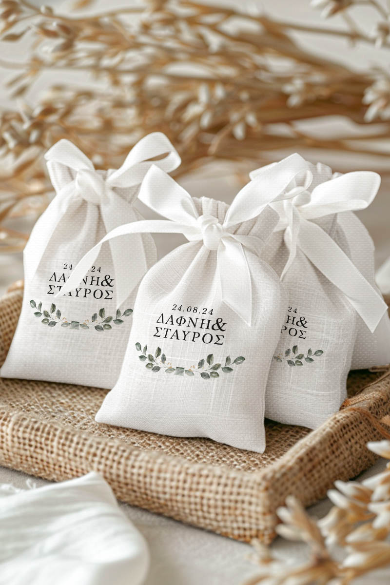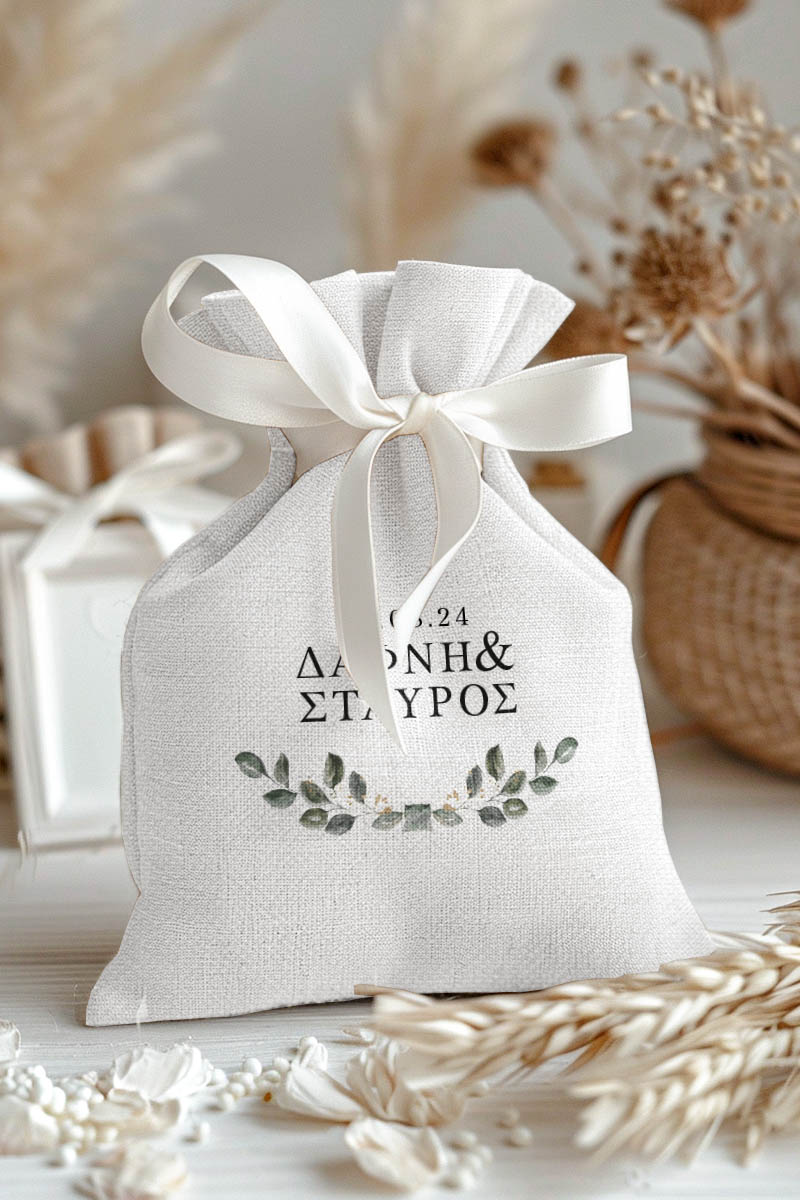 1.59€Μοντέρνες και Πρωτότυπες Μπομπονιέρες Γάμου και Βάπτισης με Πουγκί από Καμβά | Σετ Πουγκί, Εσωτερικό Τούλι & Κορδέλα Σατέν | Premium ποιότητα