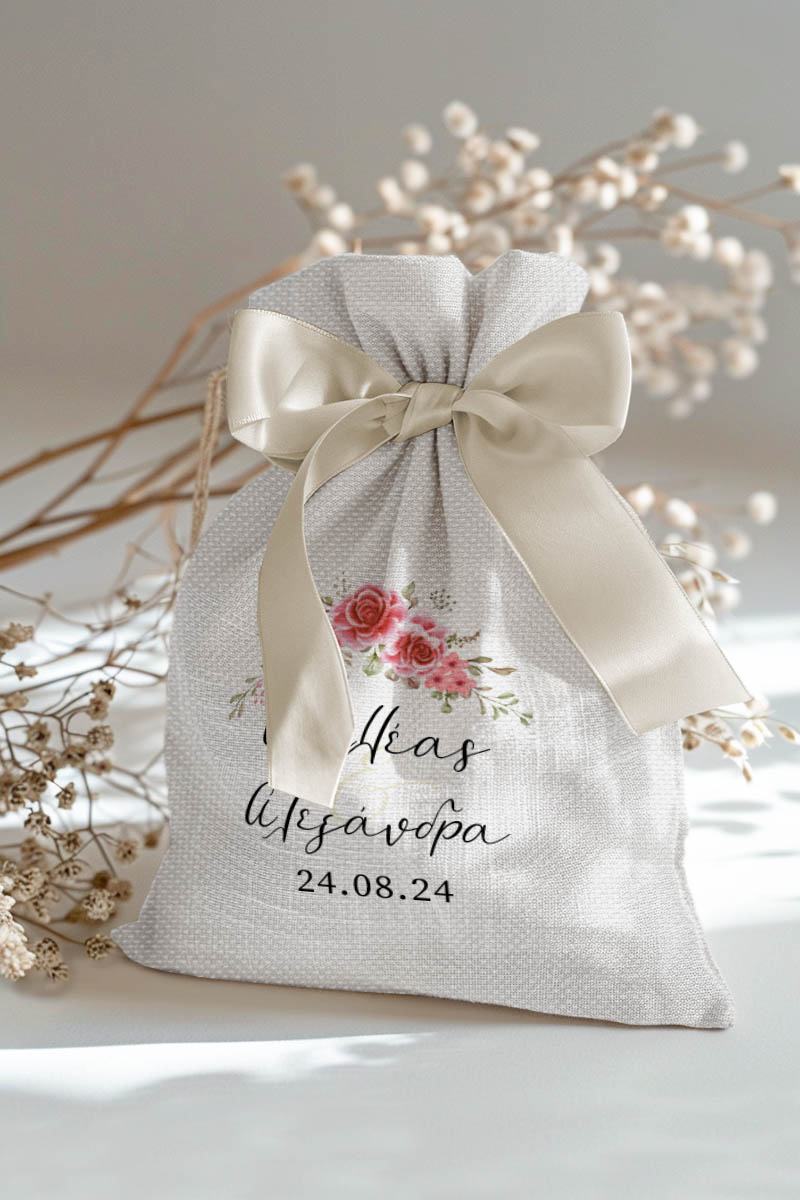 1.59€Μοντέρνες και Πρωτότυπες Μπομπονιέρες Γάμου και Βάπτισης με Πουγκί από Καμβά | Σετ Πουγκί, Εσωτερικό Τούλι & Κορδέλα Σατέν | Premium ποιότητα