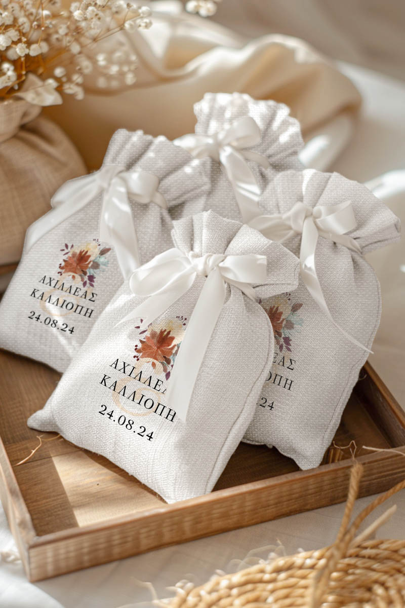 1.59€Μοντέρνες και Πρωτότυπες Μπομπονιέρες Γάμου και Βάπτισης με Πουγκί από Καμβά | Σετ Πουγκί, Εσωτερικό Τούλι & Κορδέλα Σατέν | Premium ποιότητα