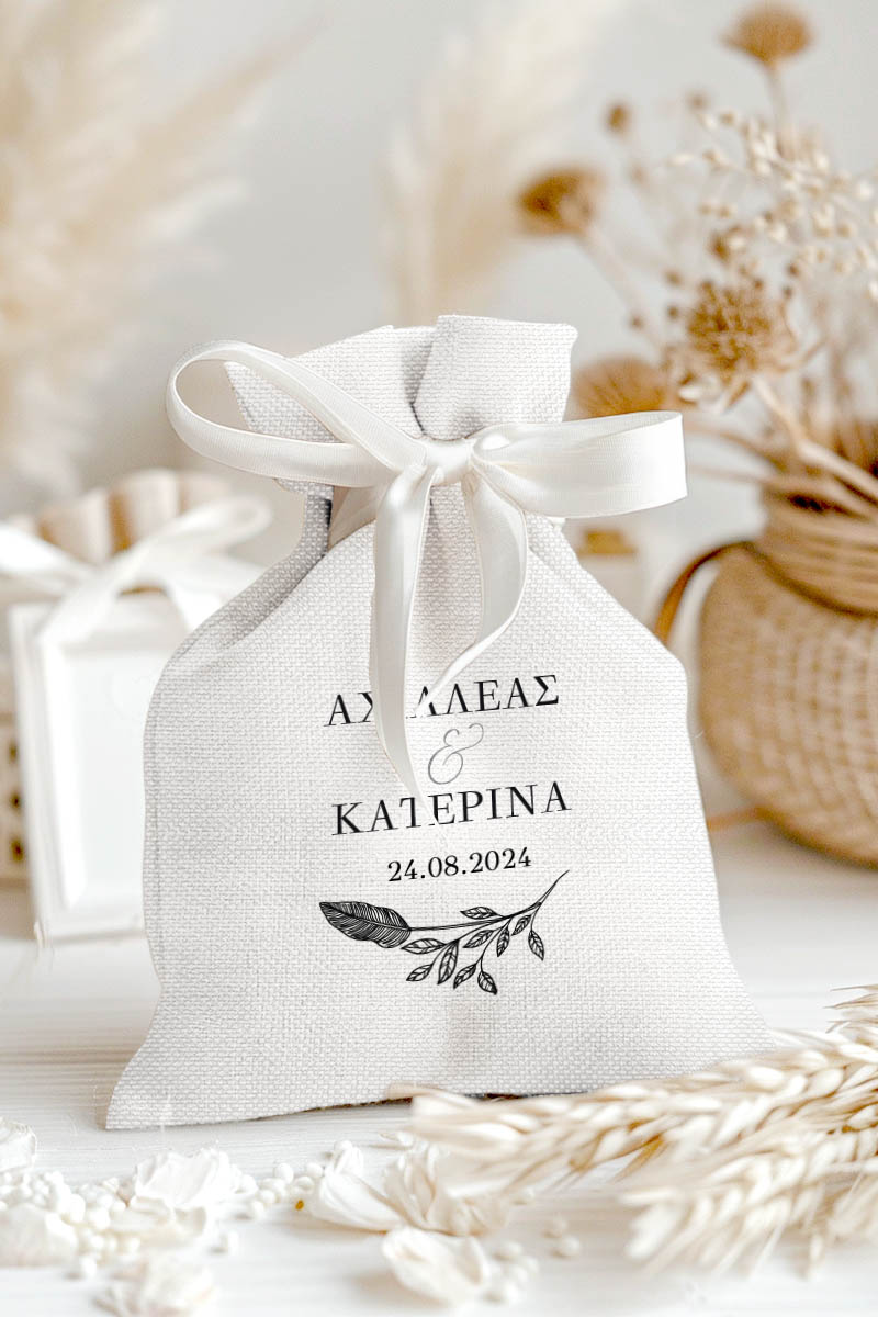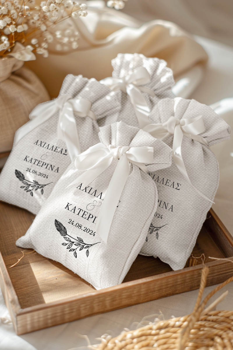 1.59€Μοντέρνες και Πρωτότυπες Μπομπονιέρες Γάμου και Βάπτισης με Πουγκί από Καμβά | Σετ Πουγκί, Εσωτερικό Τούλι & Κορδέλα Σατέν | Premium ποιότητα