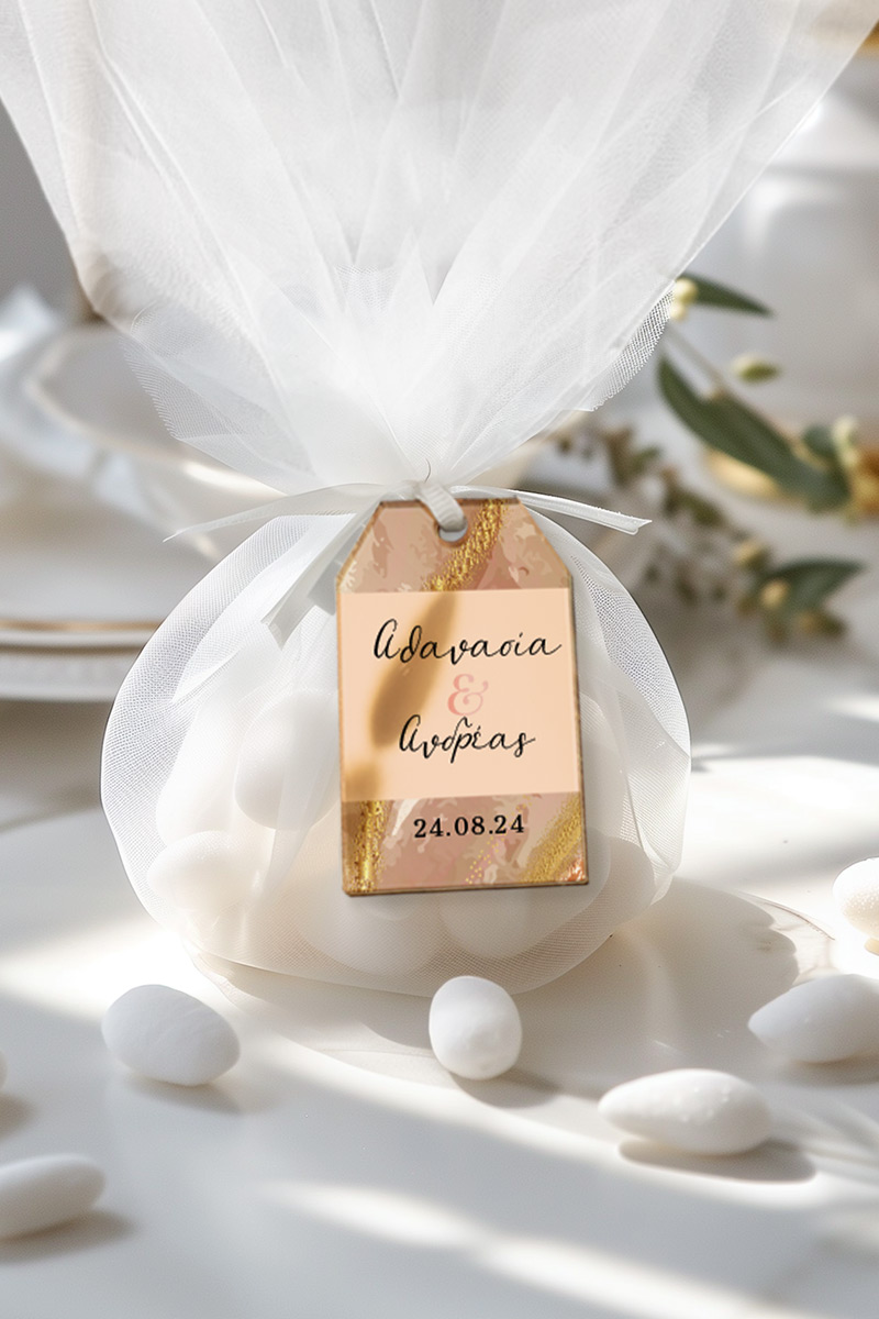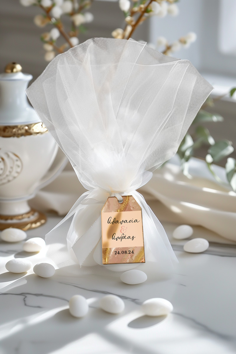 0.59€ – 1.49€Μοντέρνες & πρωτότυπες μπομπονιέρες Γάμου με τούλι & κρεμαστό σχέδιο| Σετ εξωτερικό τούλι, Εσωτερικό τούλι, Κορδέλα σατέν & Κρεμαστό σχέδιο σε premium χαρτί, ξύλο ή plexiglass | Premium ποιότητα