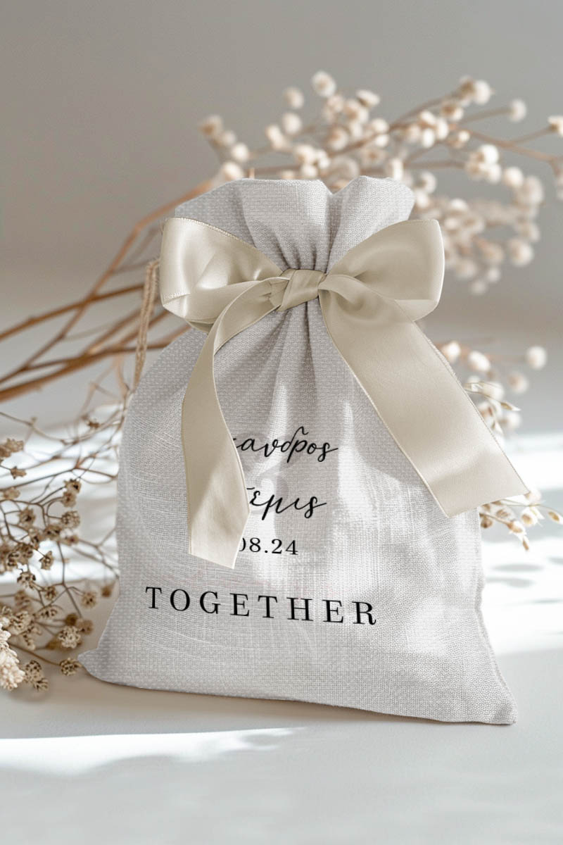 1.59€Μοντέρνες και Πρωτότυπες Μπομπονιέρες Γάμου με Πουγκί από Καμβά | Σετ Πουγκί, Εσωτερικό Τούλι & Κορδέλα Σατέν | Premium ποιότητα