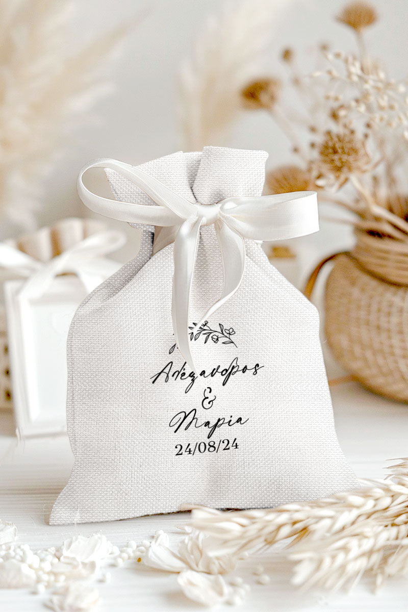 1.59€Μοντέρνες και Πρωτότυπες Μπομπονιέρες Γάμου και Βάπτισης με Πουγκί από Καμβά | Σετ Πουγκί, Εσωτερικό Τούλι & Κορδέλα Σατέν | Premium ποιότητα