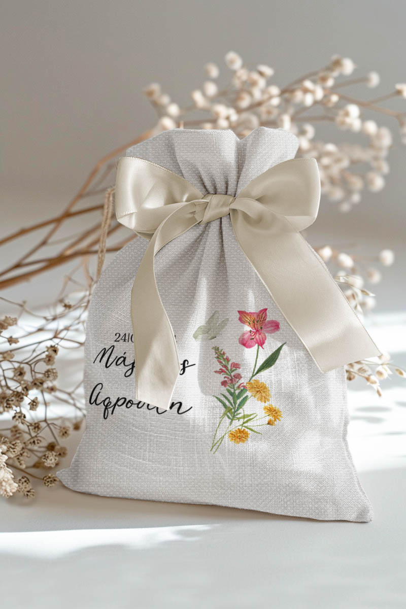 1.59€Μοντέρνες και Πρωτότυπες Μπομπονιέρες Γάμου και Βάπτισης με Πουγκί από Καμβά | Σετ Πουγκί, Εσωτερικό Τούλι & Κορδέλα Σατέν | Premium ποιότητα