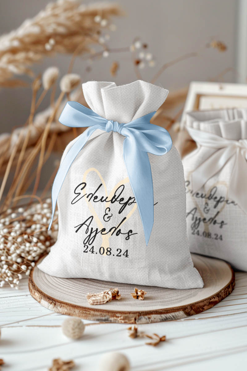 1.59€Μοντέρνες και Πρωτότυπες Μπομπονιέρες Γάμου και Βάπτισης με Πουγκί από Καμβά | Σετ Πουγκί, Εσωτερικό Τούλι & Κορδέλα Σατέν | Premium ποιότητα