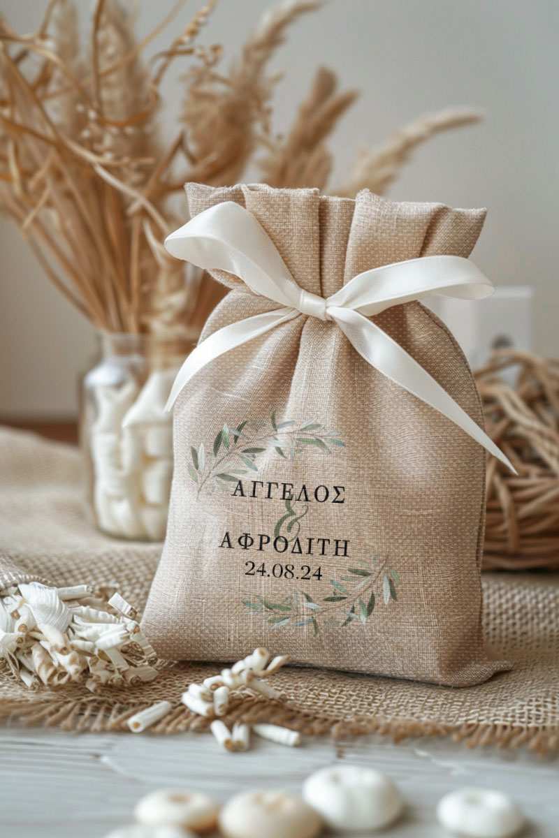 1.59€Μοντέρνες και Πρωτότυπες Μπομπονιέρες Γάμου με Πουγκί από Καμβά | Σετ Πουγκί, Εσωτερικό Τούλι & Κορδέλα Σατέν | Premium ποιότητα