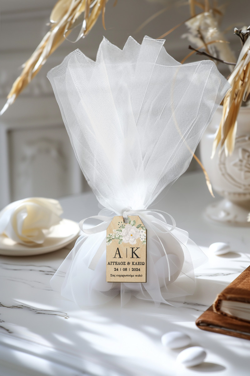0.59€ – 1.49€Μοντέρνες & πρωτότυπες μπομπονιέρες Γάμου και Βάπτισης με τούλι & κρεμαστό σχέδιο | Σετ εξωτερικό τούλι, Εσωτερικό τούλι, Κορδέλα σατέν & Κρεμαστό σχέδιο σε premium χαρτί, ξύλο ή plexiglass | Premium ποιότητα