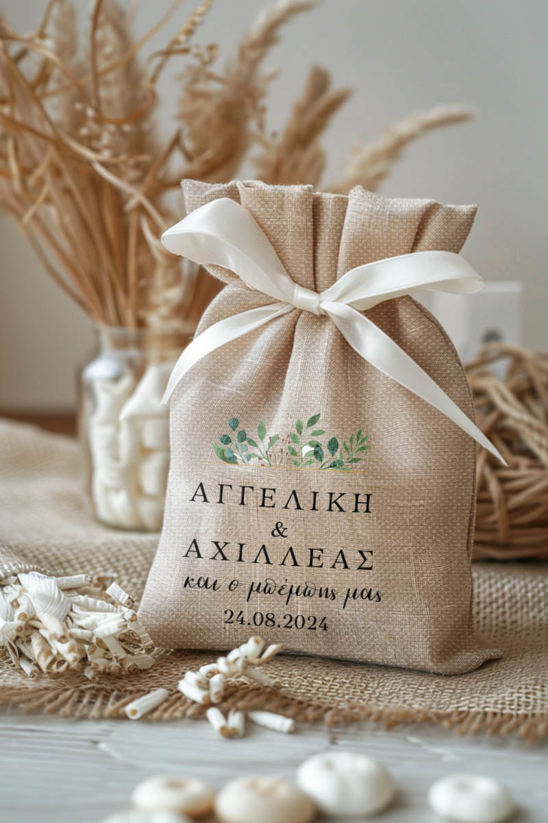 1.59€Μοντέρνες και Πρωτότυπες Μπομπονιέρες Γάμου και Βάπτισης με Πουγκί από Καμβά | Σετ Πουγκί, Εσωτερικό Τούλι & Κορδέλα Σατέν | Premium ποιότητα
