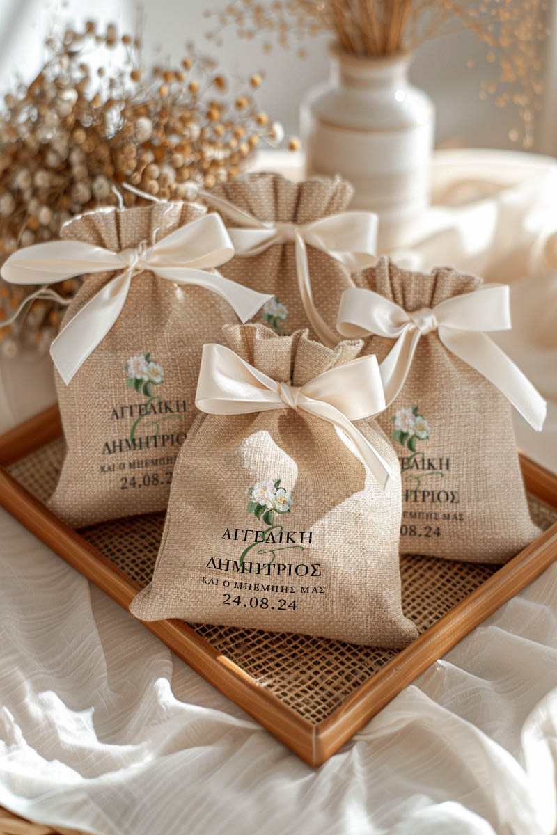 1.59€Μοντέρνες και Πρωτότυπες Μπομπονιέρες Γάμου με Πουγκί από Καμβά | Σετ Πουγκί, Εσωτερικό Τούλι & Κορδέλα Σατέν | Premium ποιότητα
