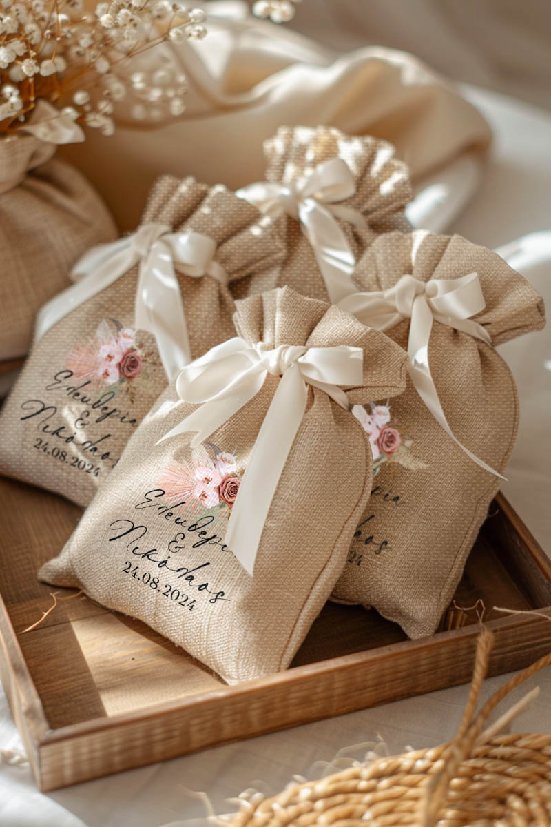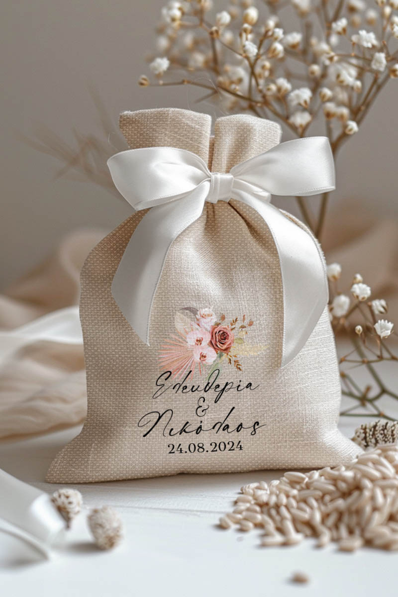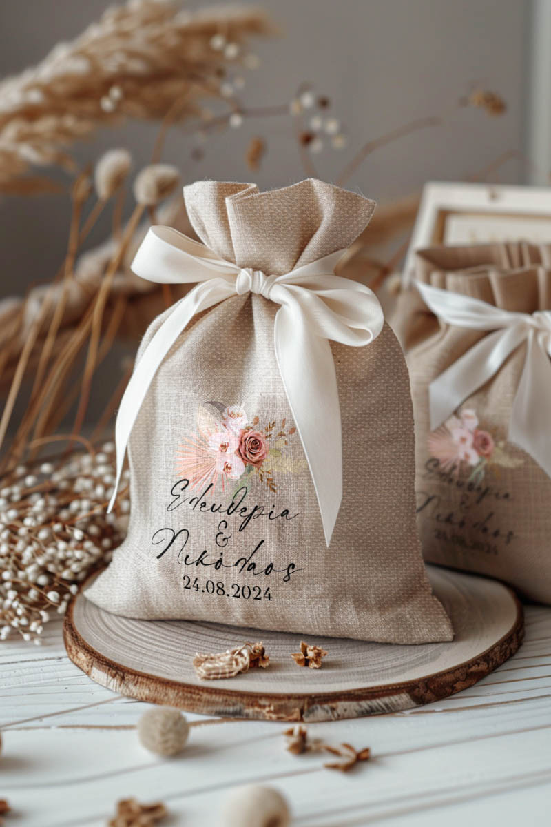 1.59€Μοντέρνες και Πρωτότυπες Μπομπονιέρες Γάμου και Βάπτισης με Πουγκί από Καμβά | Σετ Πουγκί, Εσωτερικό Τούλι & Κορδέλα Σατέν | Premium ποιότητα