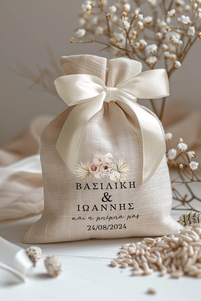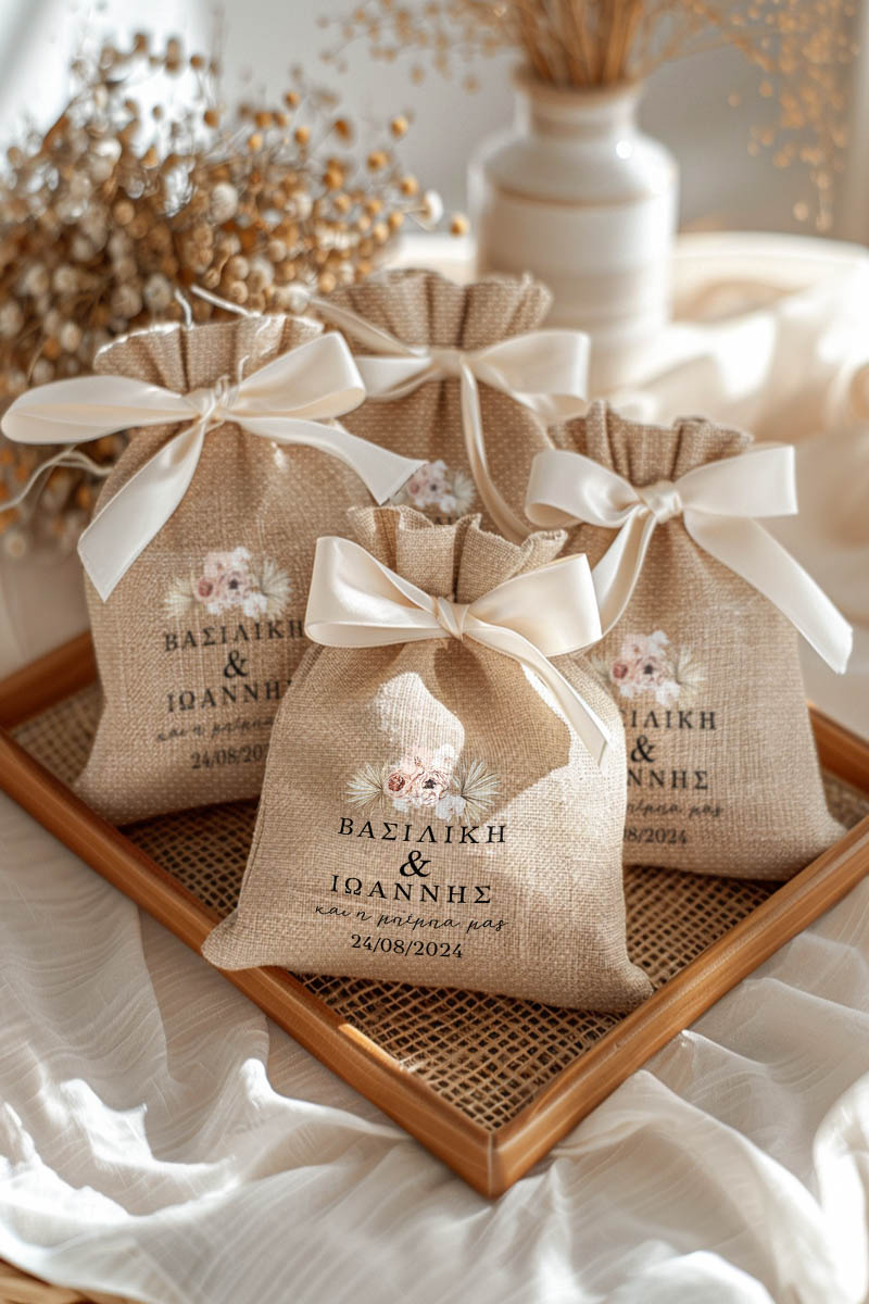 1.59€Μοντέρνες και Πρωτότυπες Μπομπονιέρες Γάμου και Βάπτισης με Πουγκί από Καμβά | Σετ Πουγκί, Εσωτερικό Τούλι & Κορδέλα Σατέν | Premium ποιότητα