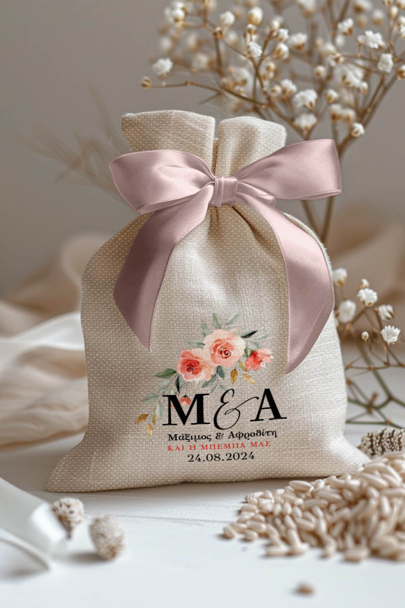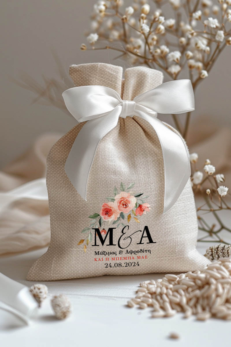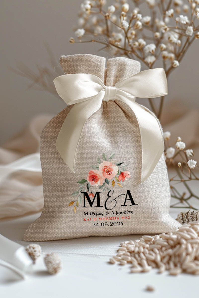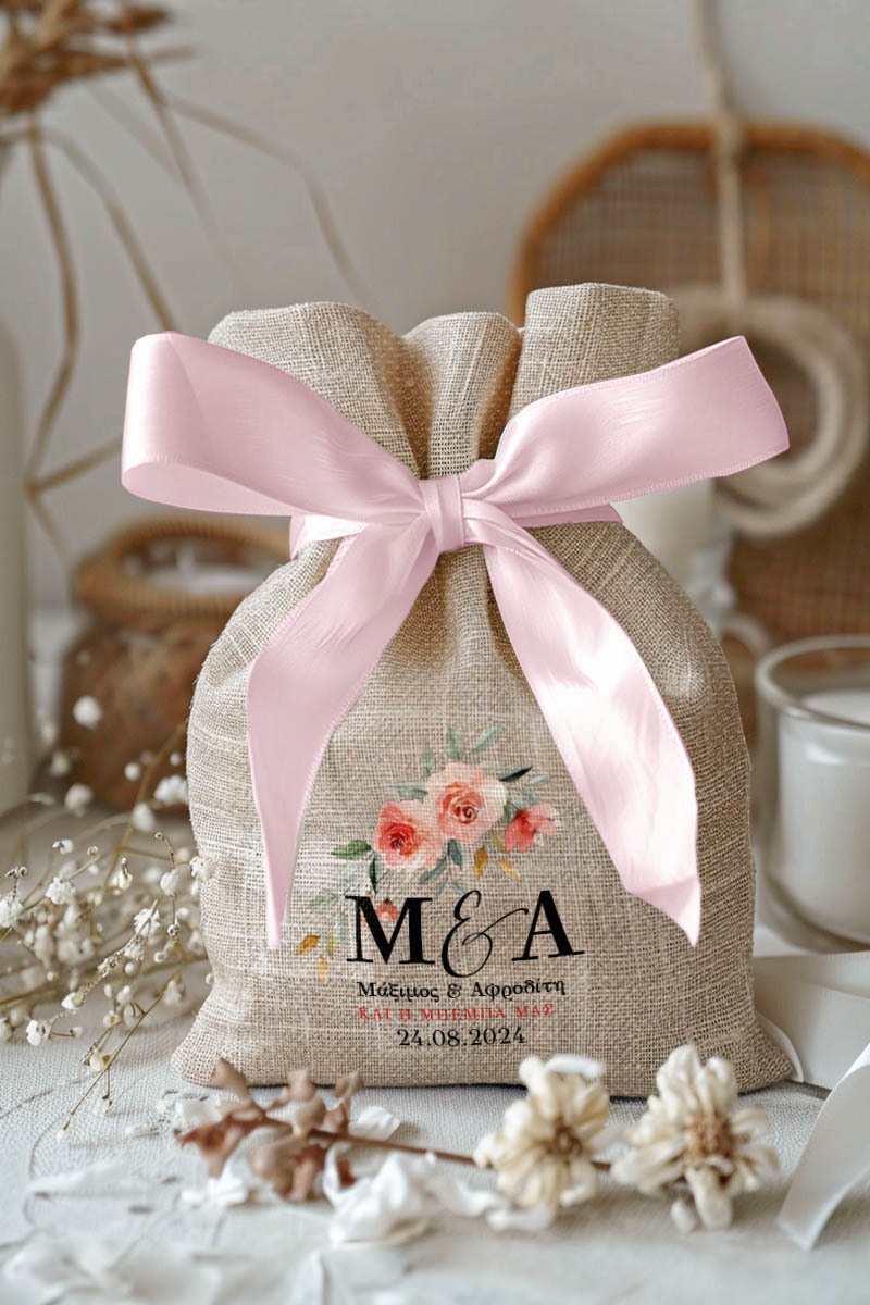1.59€Μοντέρνες και Πρωτότυπες Μπομπονιέρες Γάμου και Βάπτισης με Πουγκί από Καμβά | Σετ Πουγκί, Εσωτερικό Τούλι & Κορδέλα Σατέν | Premium ποιότητα