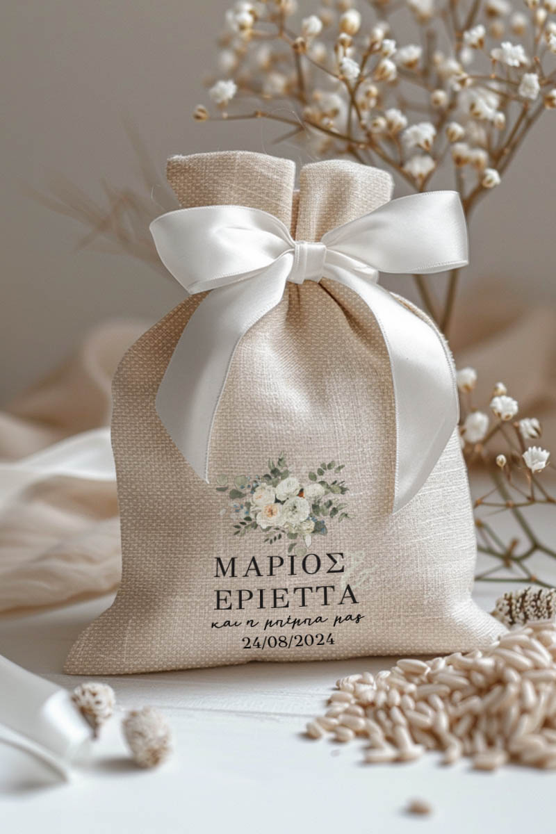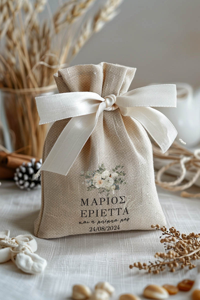 1.59€Μοντέρνες και Πρωτότυπες Μπομπονιέρες Γάμου και Βάπτισης με Πουγκί από Καμβά | Σετ Πουγκί, Εσωτερικό Τούλι & Κορδέλα Σατέν | Premium ποιότητα