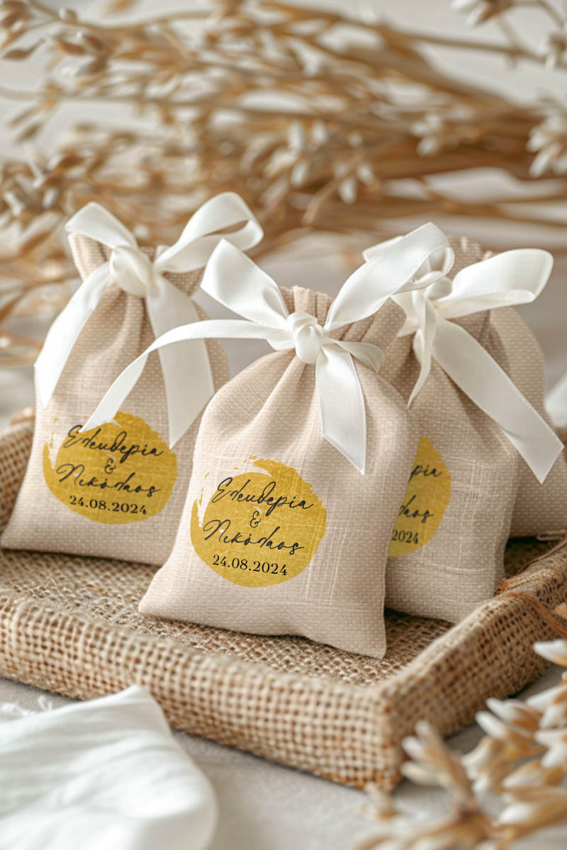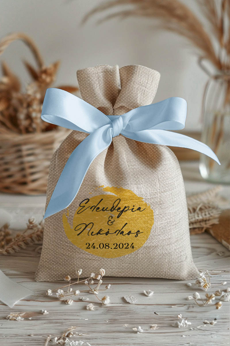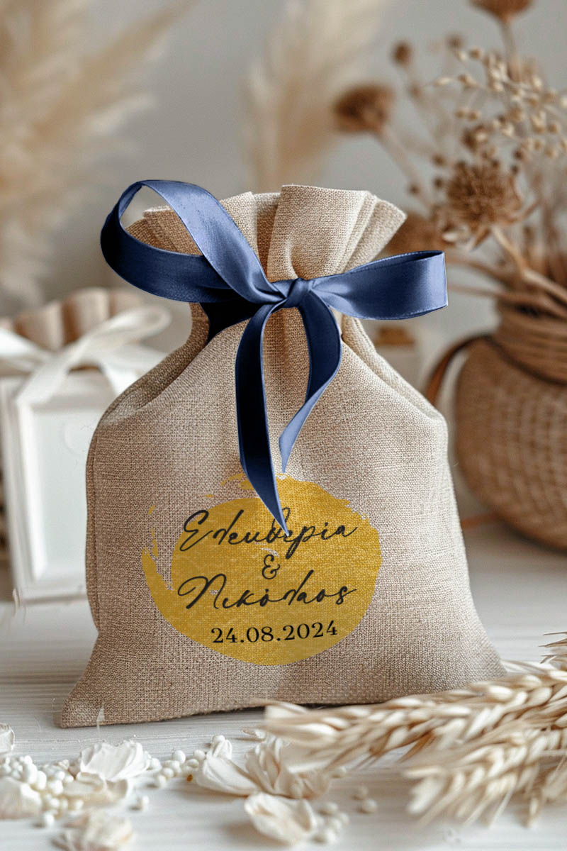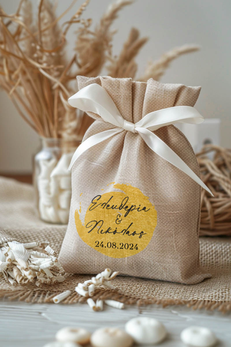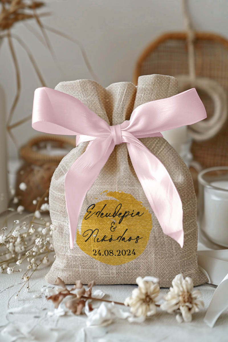 1.59€Μοντέρνες και Πρωτότυπες Μπομπονιέρες Γάμου και Βάπτισης με Πουγκί από Καμβά | Σετ Πουγκί, Εσωτερικό Τούλι & Κορδέλα Σατέν | Premium ποιότητα